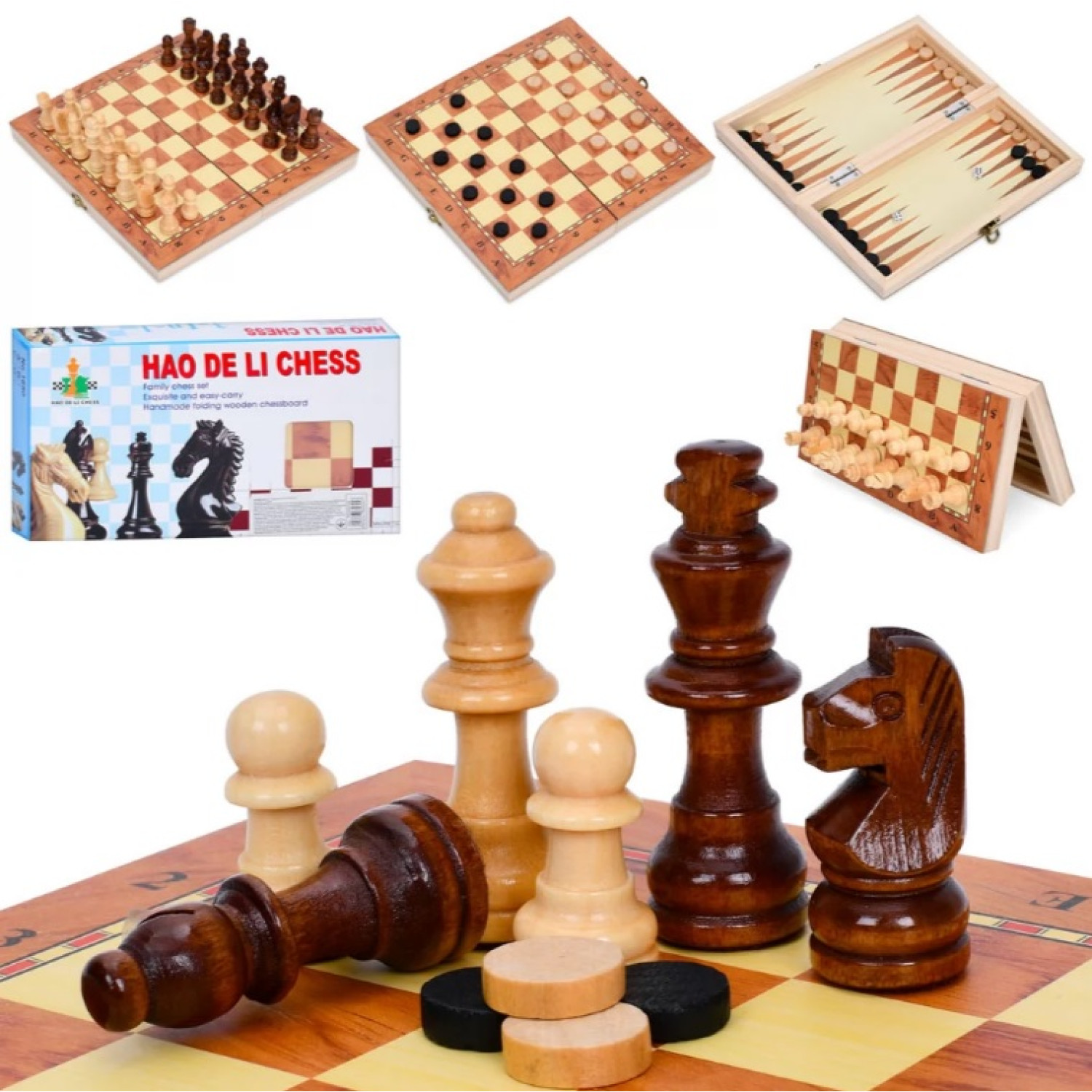 Шахи дерев'яні, 3в1(шахи, нарди), фігури-дерево, шахові фігури магнитні, кубики, в кор-ці, 25-13,5-4,5см /20/