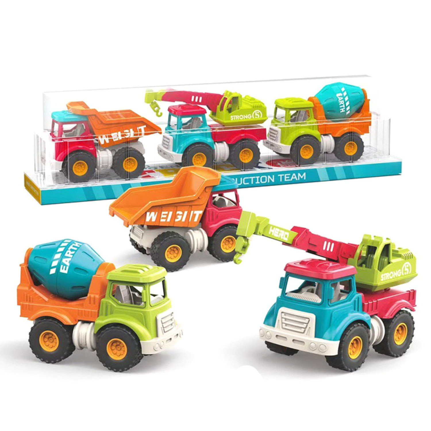 Будтехніка інерц, набір 3шт (самоскид, бетонозмішувач, кран), 11см, рухливі деталі, у слюді, 39,5-8-10,5см /48/