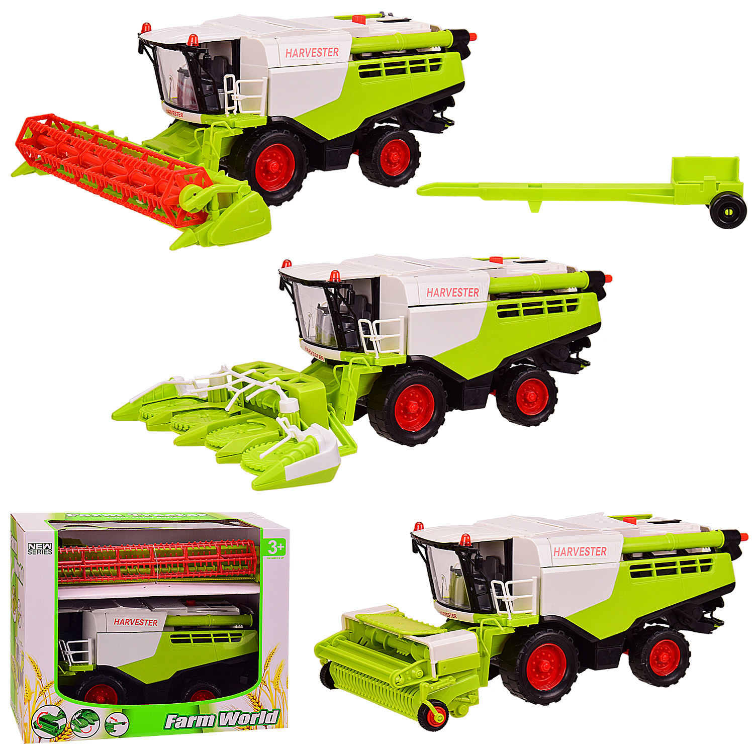 Машинка "Комбайн", упаковка - картонная коробка с блистером. В ассортименте 3 вида. Игрушка оснащена инерционным механизмом. Материал - пластмасса. Возрастная группа - от 3 лет.