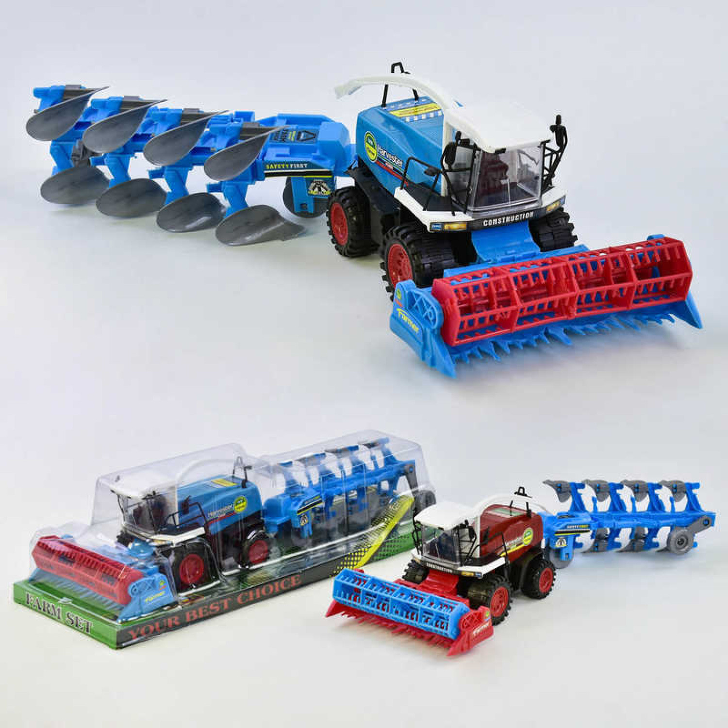 Іграшкова модель комбайна, упаковка - слюда. Розміри 47*17*12 см. Іграшка має рухомі деталі, обладнана інерційним механізмом. Матеріал - пластик. В асортименті 2 види.