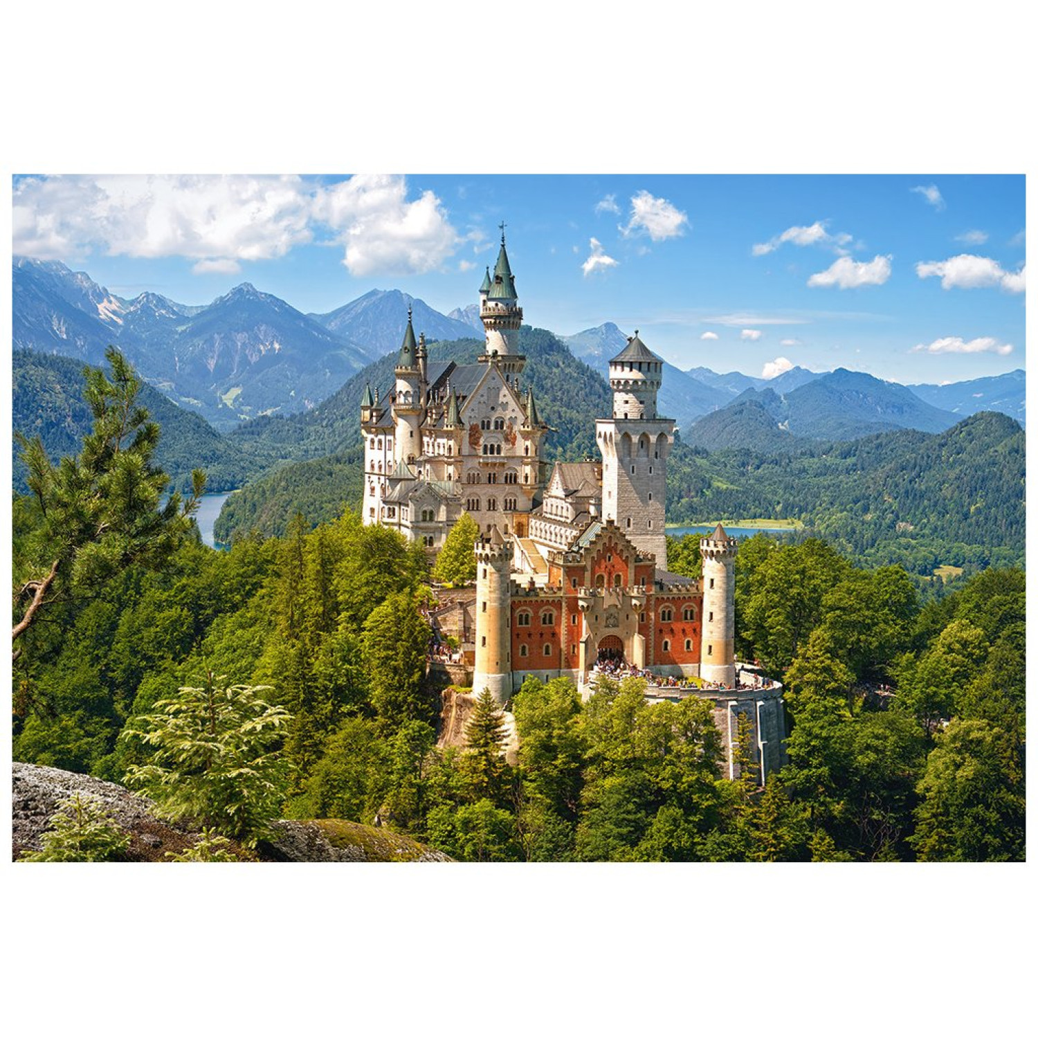 Пазл "Замок Нойшванштайн, Германия", упаковка - картонная коробка. В комплекте 500 элементов пазла. Размер готовой картинки 47*33 см. Размер детали 1,9*1,7 см. Материал - картон. Возраст - от 9 лет.
