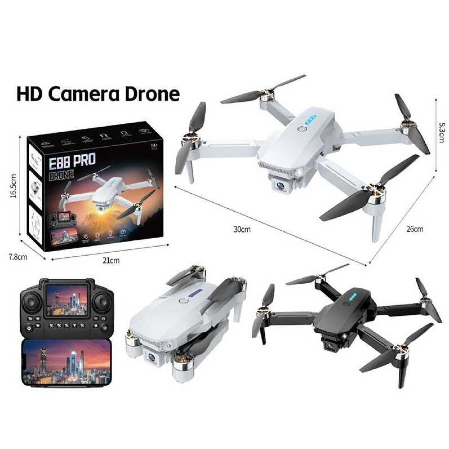 Функції: Дальність польоту: 100 м. Час польоту: близько 15 хвилин. Фіксована висота точки. У квадрокоптері є 3 рівні швидкості польоту, що дозволить отримати більше задоволення від польоту. Передача фото, відео в реальному часі. Режим польоту за маршрутом: працює через програму, просто намалюйте маршрут на екрані, дрон буде автоматично літати по вказаному шляху. Режим стеження: дрон буде автоматично слідувати за вами і знімати вас скрізь, де ви рухаєтеся. Тримати вас в кадрі в будь-який час, таким чином буде легко отримати складні знімки, що забезпечують безпілотний політ. Режим без голови: функція дозволяє не стежити за орієнтацією квадрокоптера в повітрі і тому значно спрощує процес управління в прямій видимості. Характеристики: камера: HD. Фото: 1280х720. Відео: 800х600. Обєктив камери: 120град. Кут нахилу: 90град., регулюється вручну. Двигуни: щіткові. ААкумулятор: 1800 mAh. Тип бездротового звязку: 2,4 ГГц. Розмір квадрокоптера: 25x20x4,5см