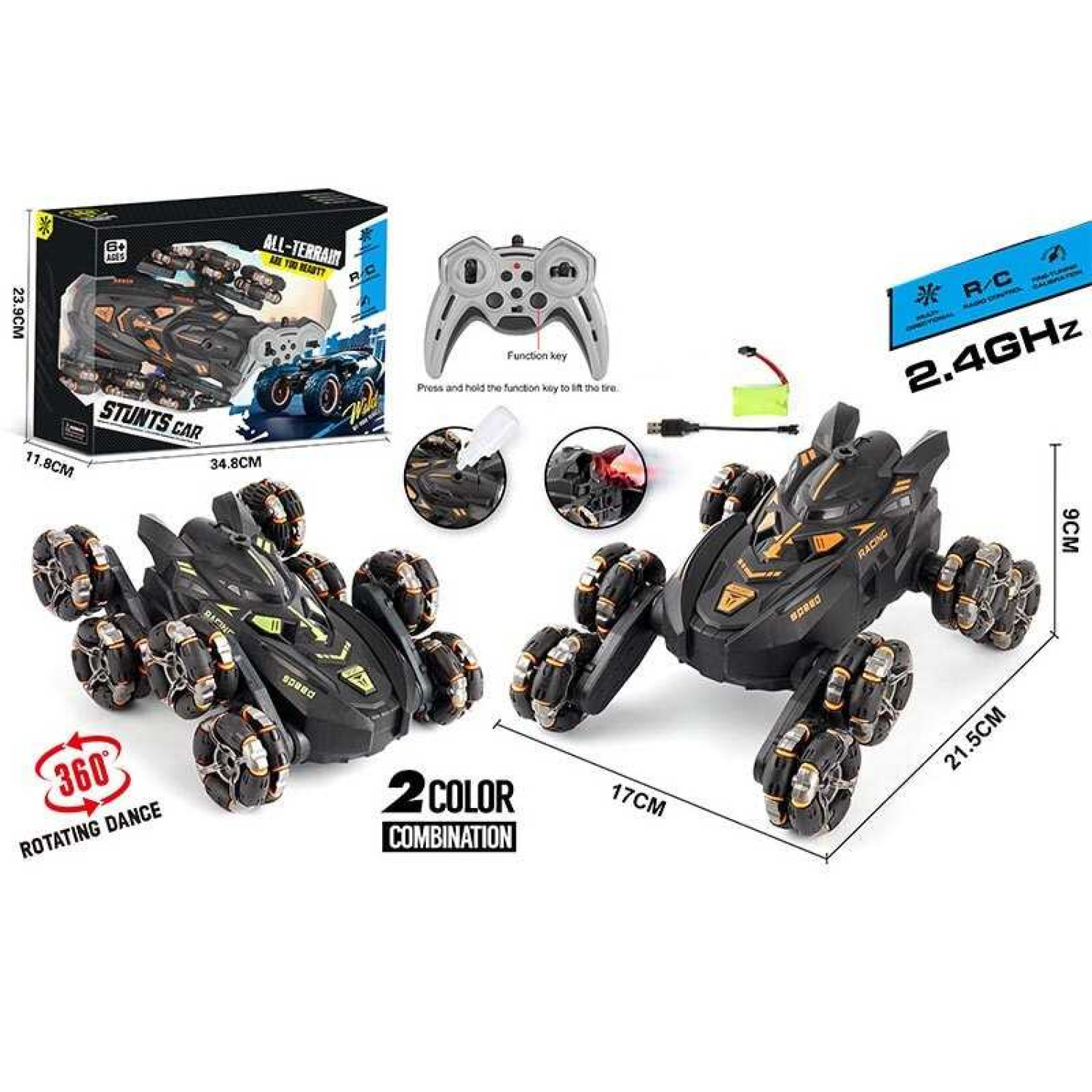 Особливості: Пульт працює від 2 батарейок типу "АА" (в комплект не входить). Машинка працює від акумулятора. В комплекті USB кабель та акумулятор 3.7 V. Роликові колеса. Функція обертання на 360 градусів. Парогенерація, пляшечка для води в комплекті. Пульт радіокерування на частоті 2,4 GHz. Можливість рухатися вперед, назад, вліво, вправо.