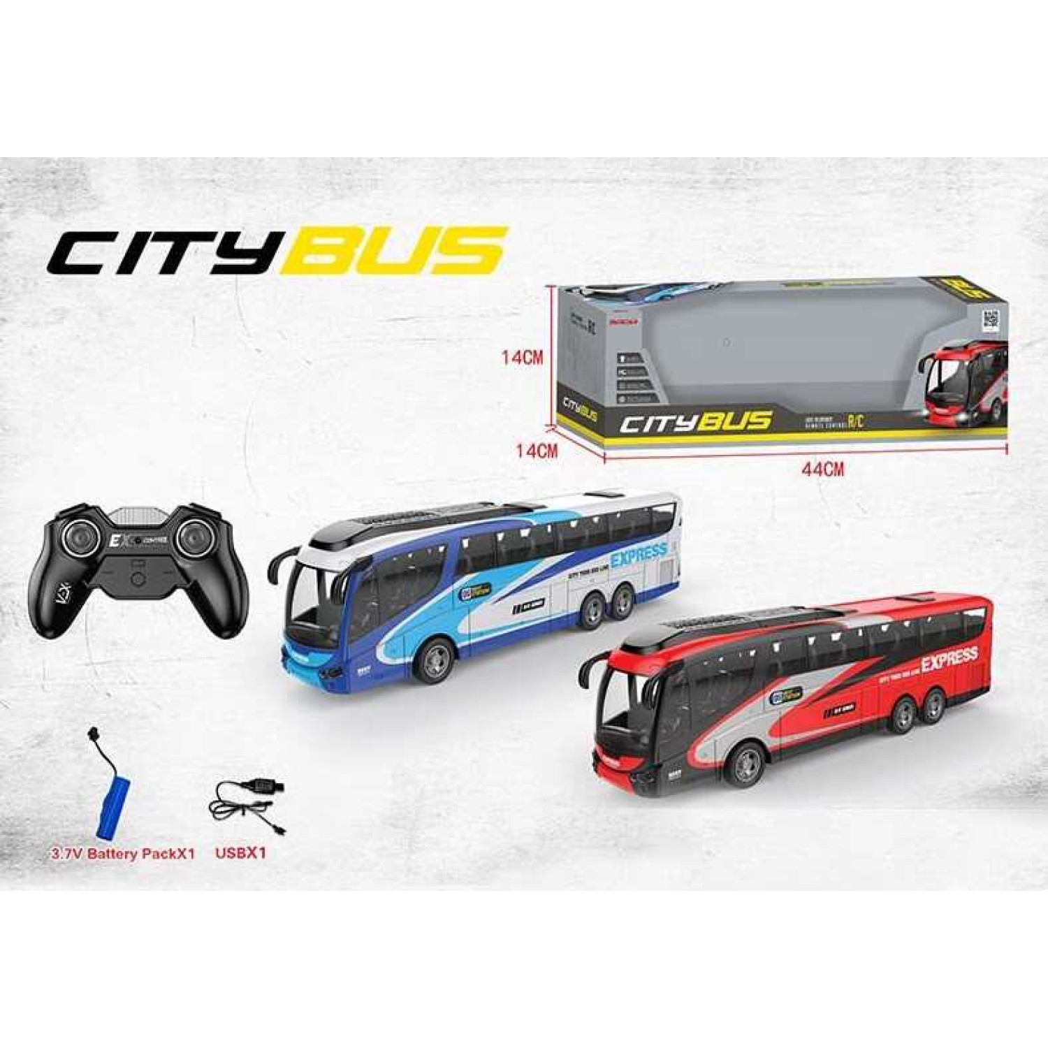 Р/К Автобус "Міський транспорт", 2 кольори, акумулятор 3.7V, управління 2.4GHz, підсвічування фар, в кор. /36/