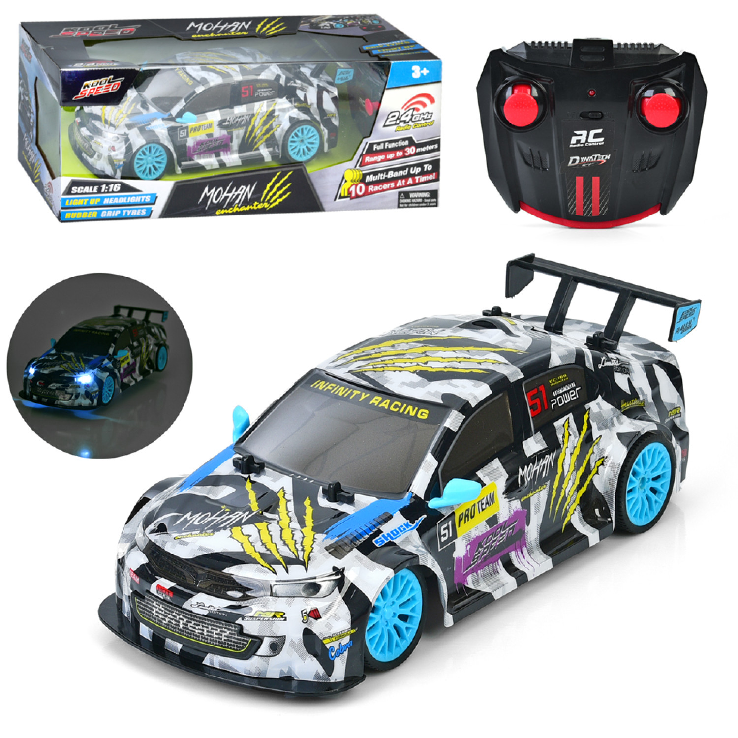 Р/К Машина 2,4G, 28см, 1:16, світло, корпус не б'ється, гумові колеса, на бат-ці, в кор- /12/