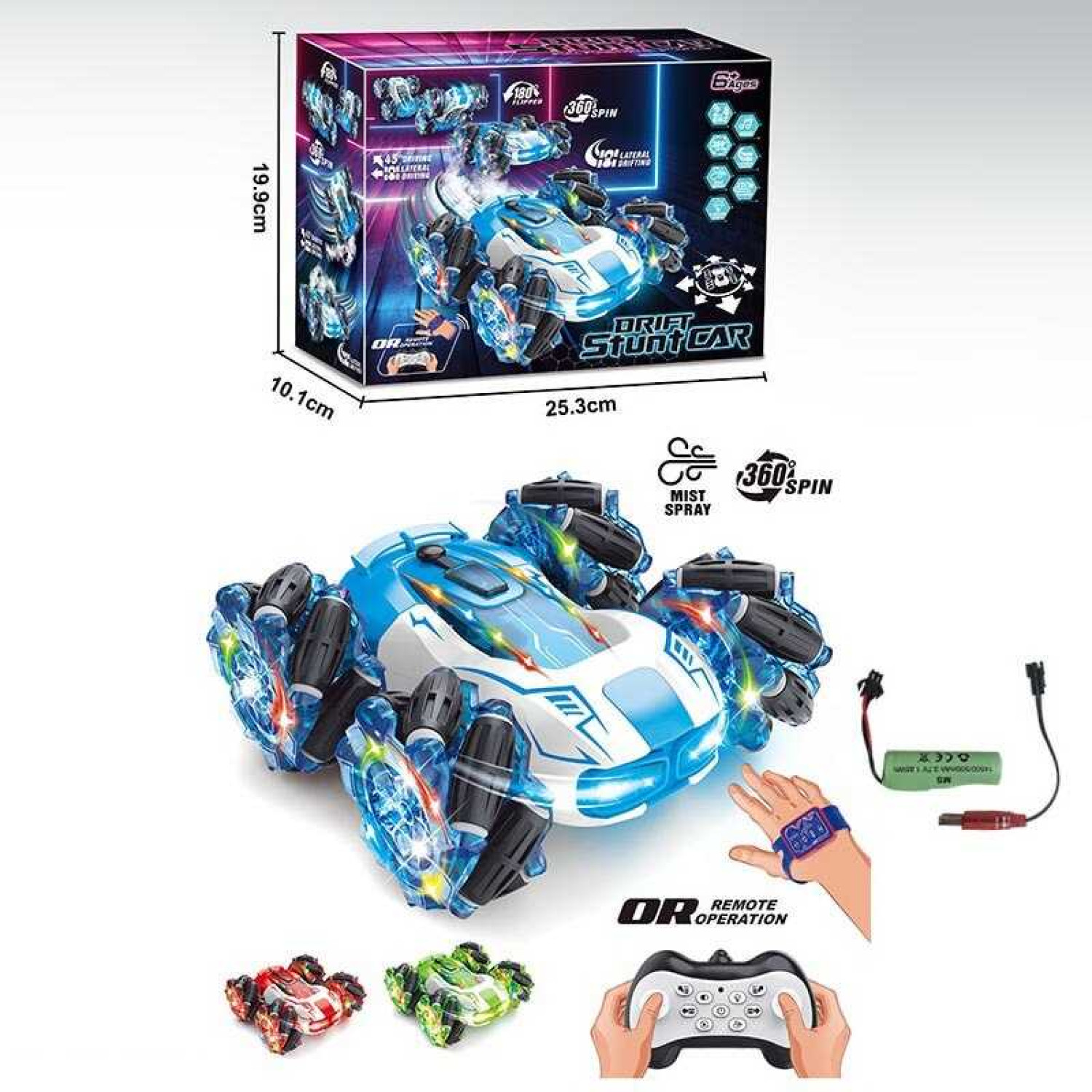 Р/К машина 3 кольори, звук, підсвічування, роликові колеса, обертається по колу, парогенератор, пульт 2.4 Ghz + браслет, USB-кабель, в кор, МІКС ВИДІВ /36-2/