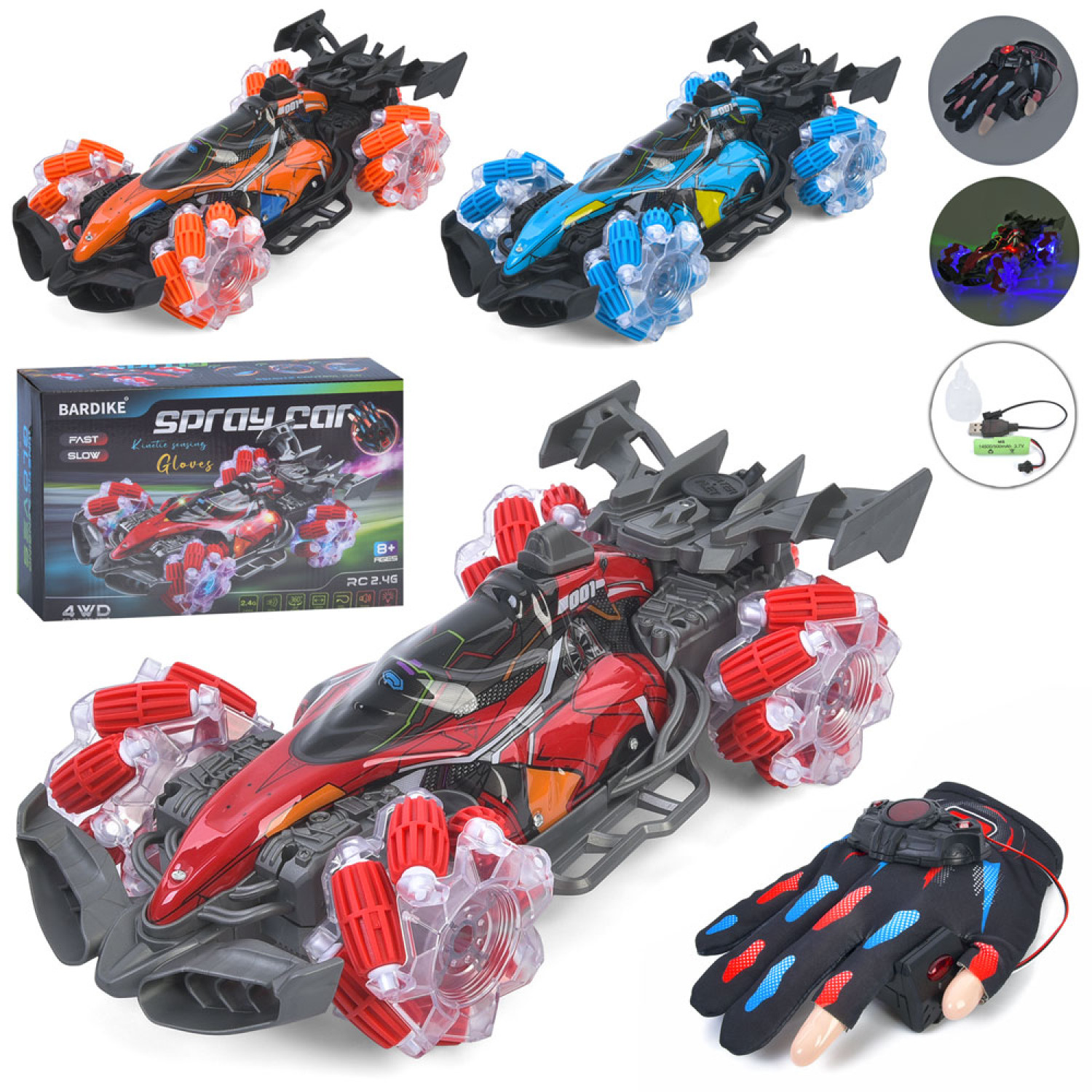 Р/К машинка 2,4G, акум, пульт-рукавичка, 28см, звук, світло, пара-дим, колеса-ролики, USBзарядне, 3 кольори, в кор-ці, 28,5-19-9см /12/