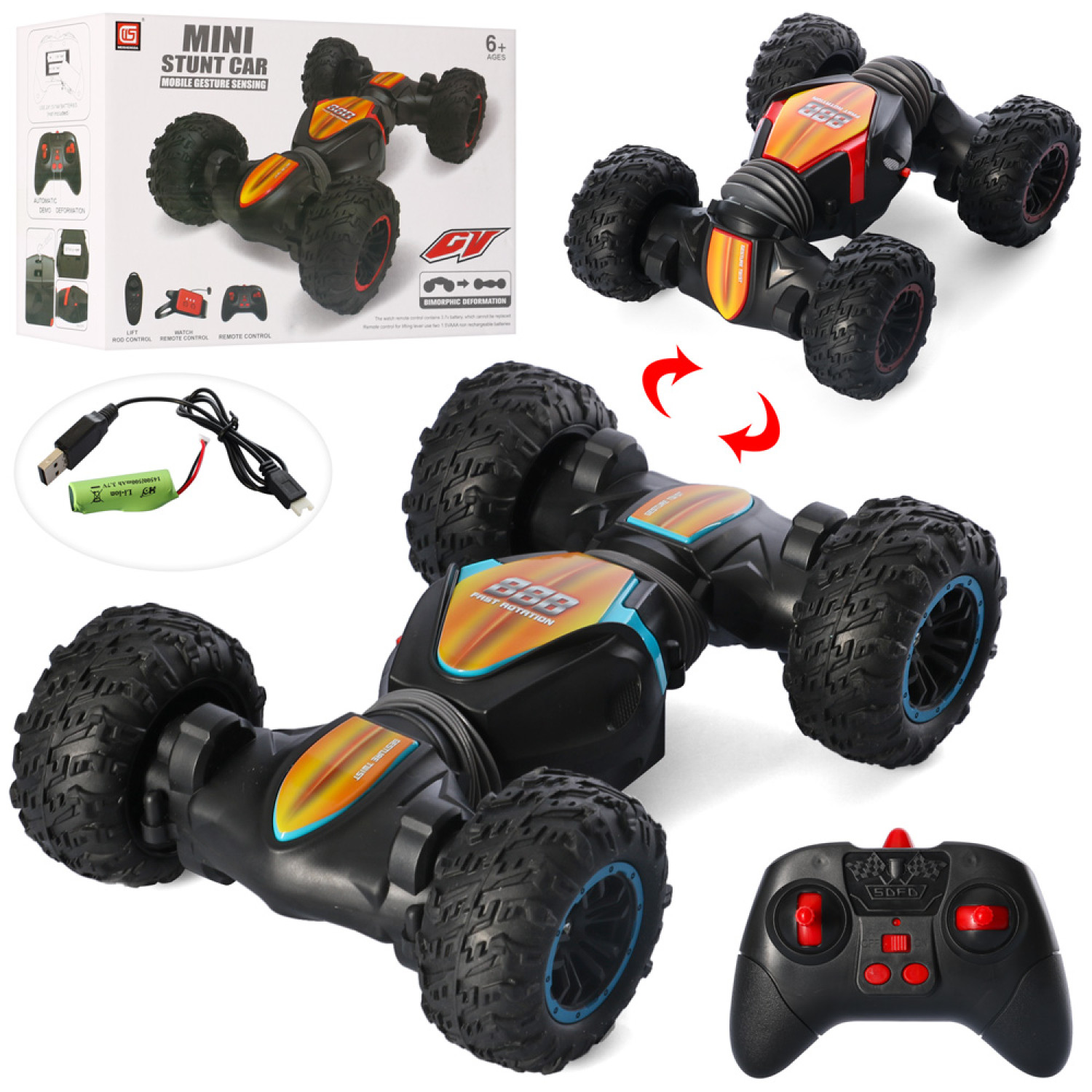 Р/К машинка, акум, 22см, трюкова, складається, гумові колеса, USBзар, в кор-ці, 23,5-16,5-10см /12/