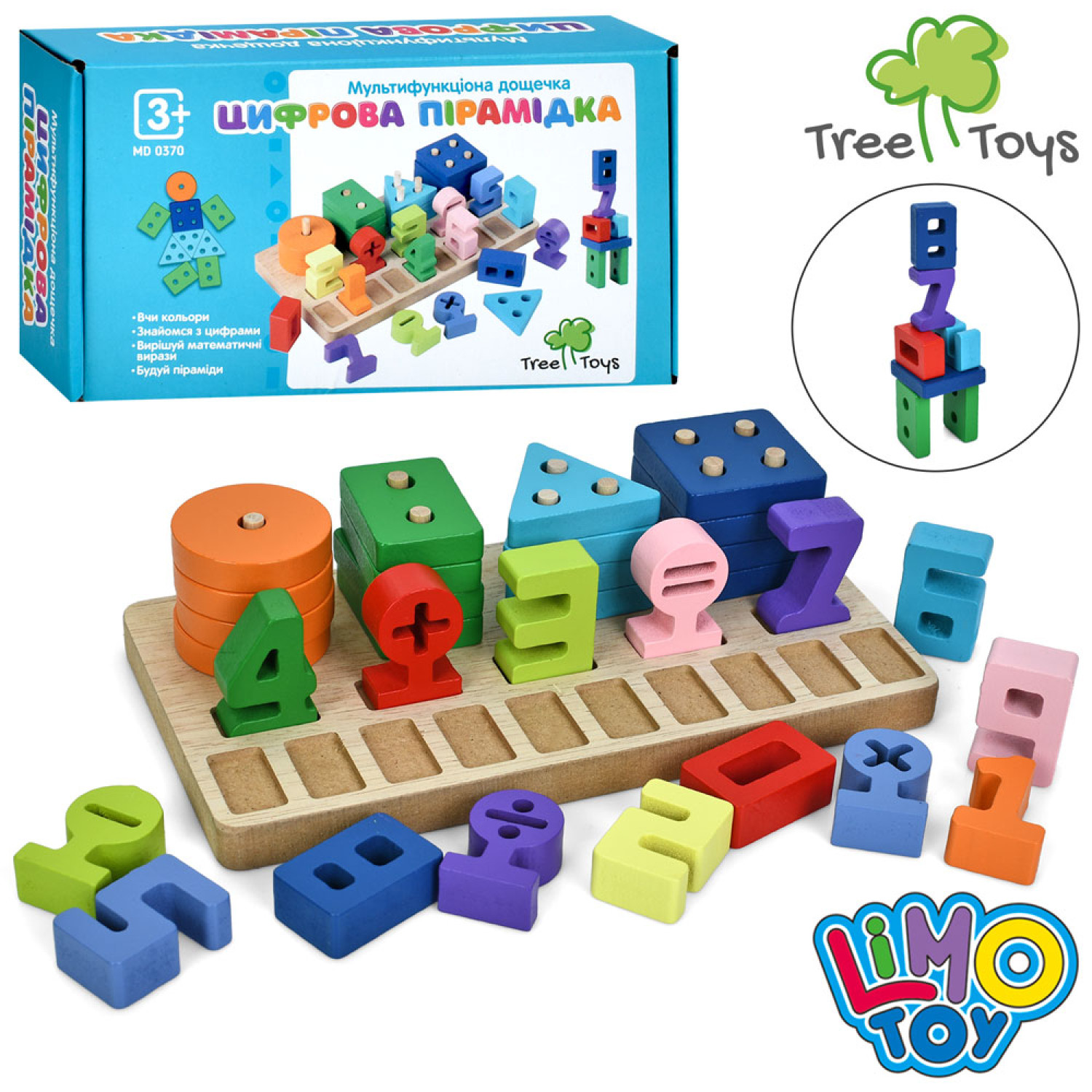 Дерев’яна іграшка Багатофункціональна дошка ігрове поле, геометрика (геом.фігури 16шт), цифри, в кор-ці, 20-11-5см /30/