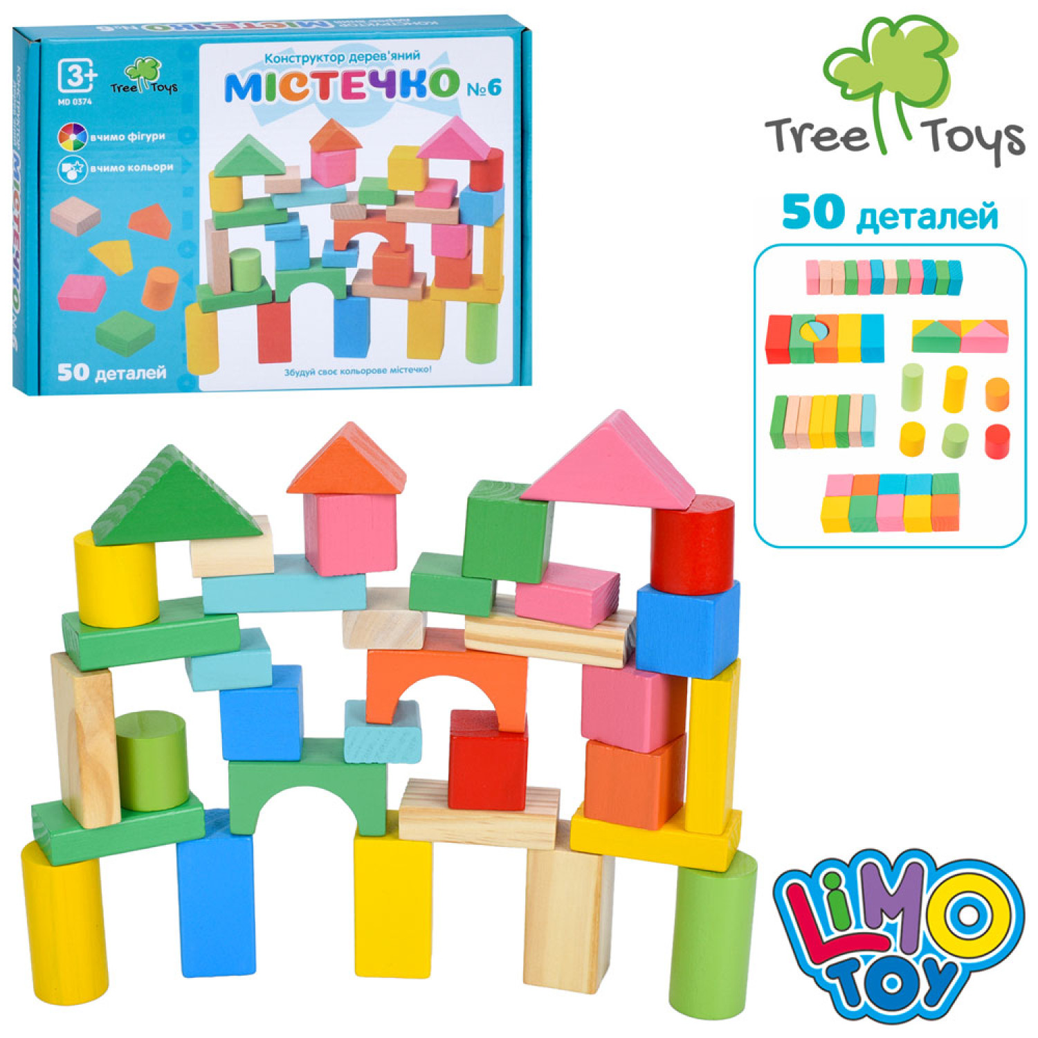 Дерев'яна іграшка Будівельні блоки містечко, 50дет, в кор-ці, 26-19-3,5см /24/