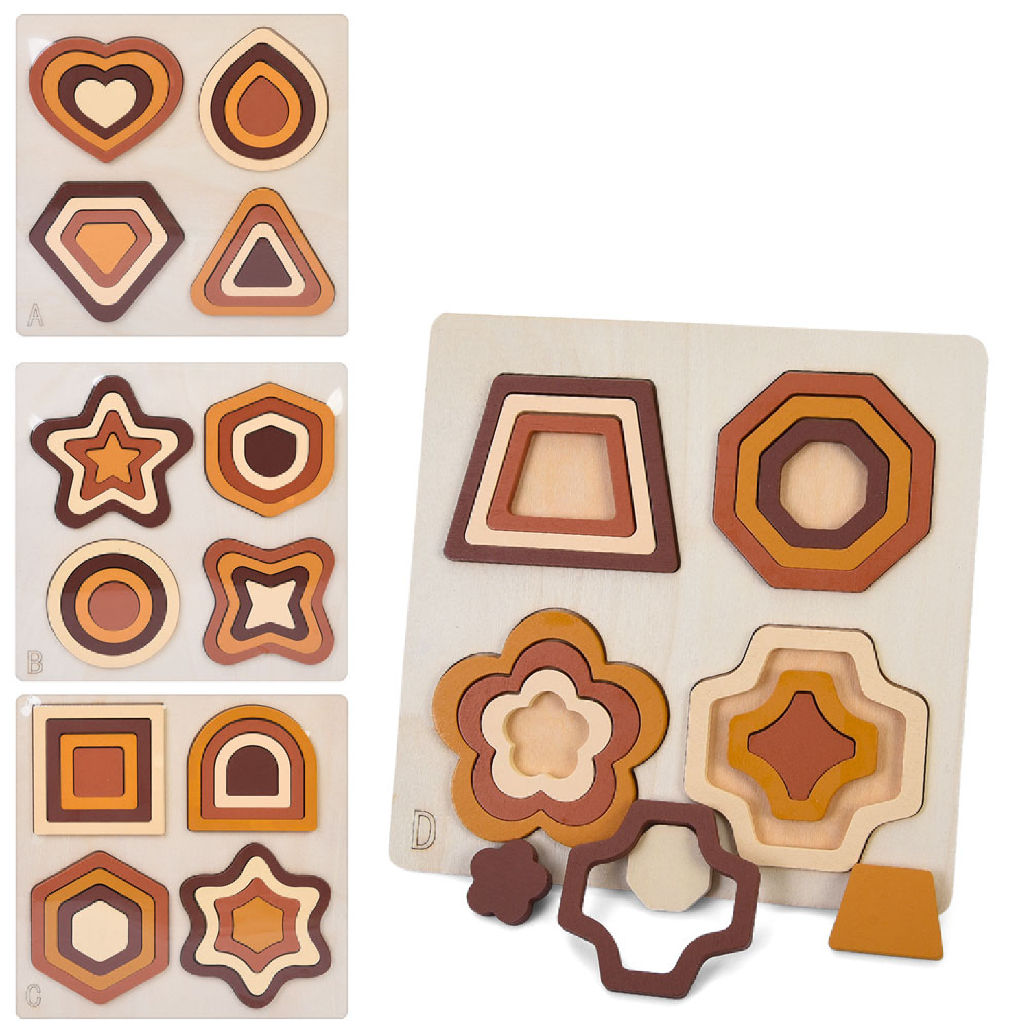 Дерев’яна іграшка Геометрика рамка-вкладиш, 4 види, у п/е, 22,5-22,5-1см /50/