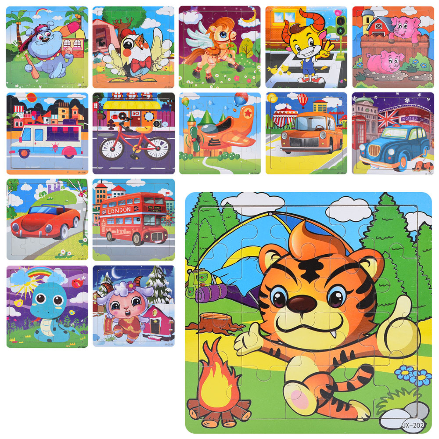 Дерев'яна іграшка Пазли 16дет, мікс видів, у п/е, 15-15-0,5см /100/
