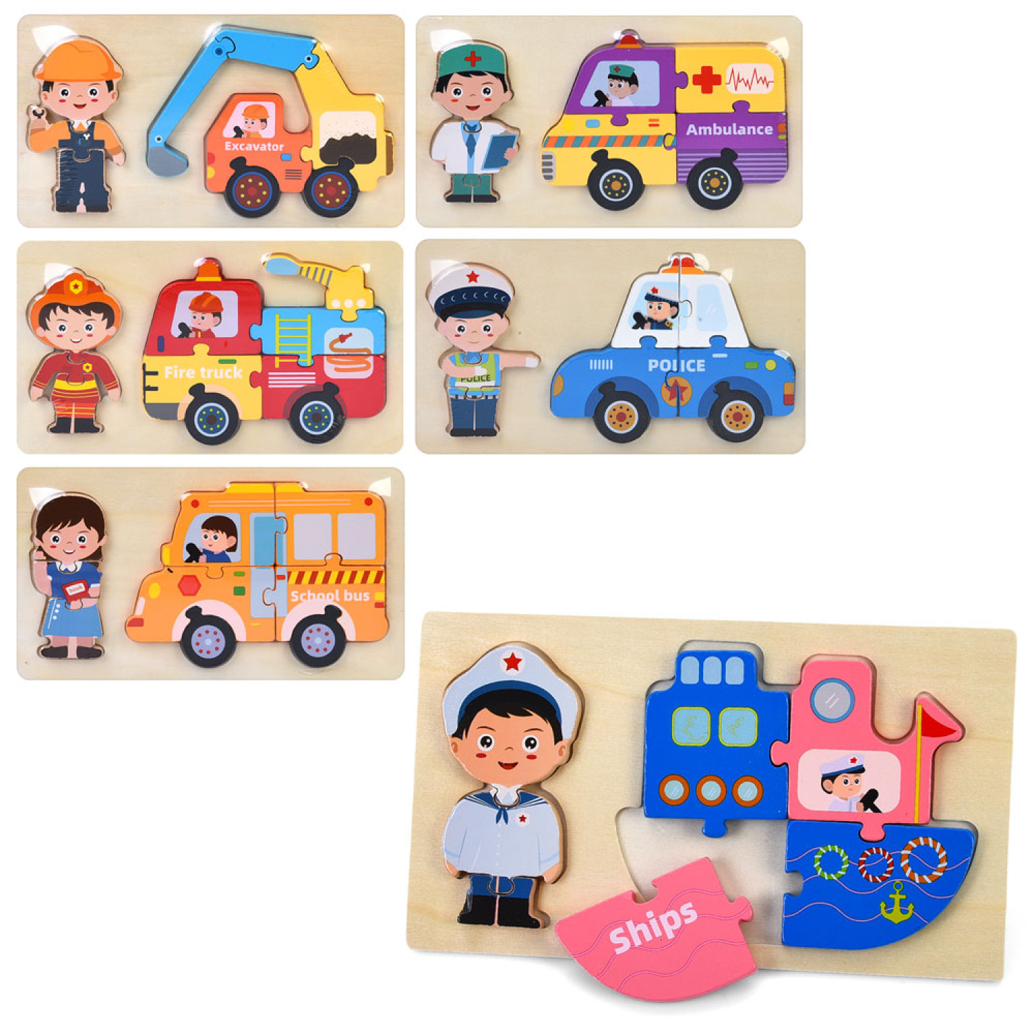 Дерев'яна іграшка Пазли фігурка+транспорт (професії), назви англ., 6 видів, у п/е, 22,5-13-1см /70/