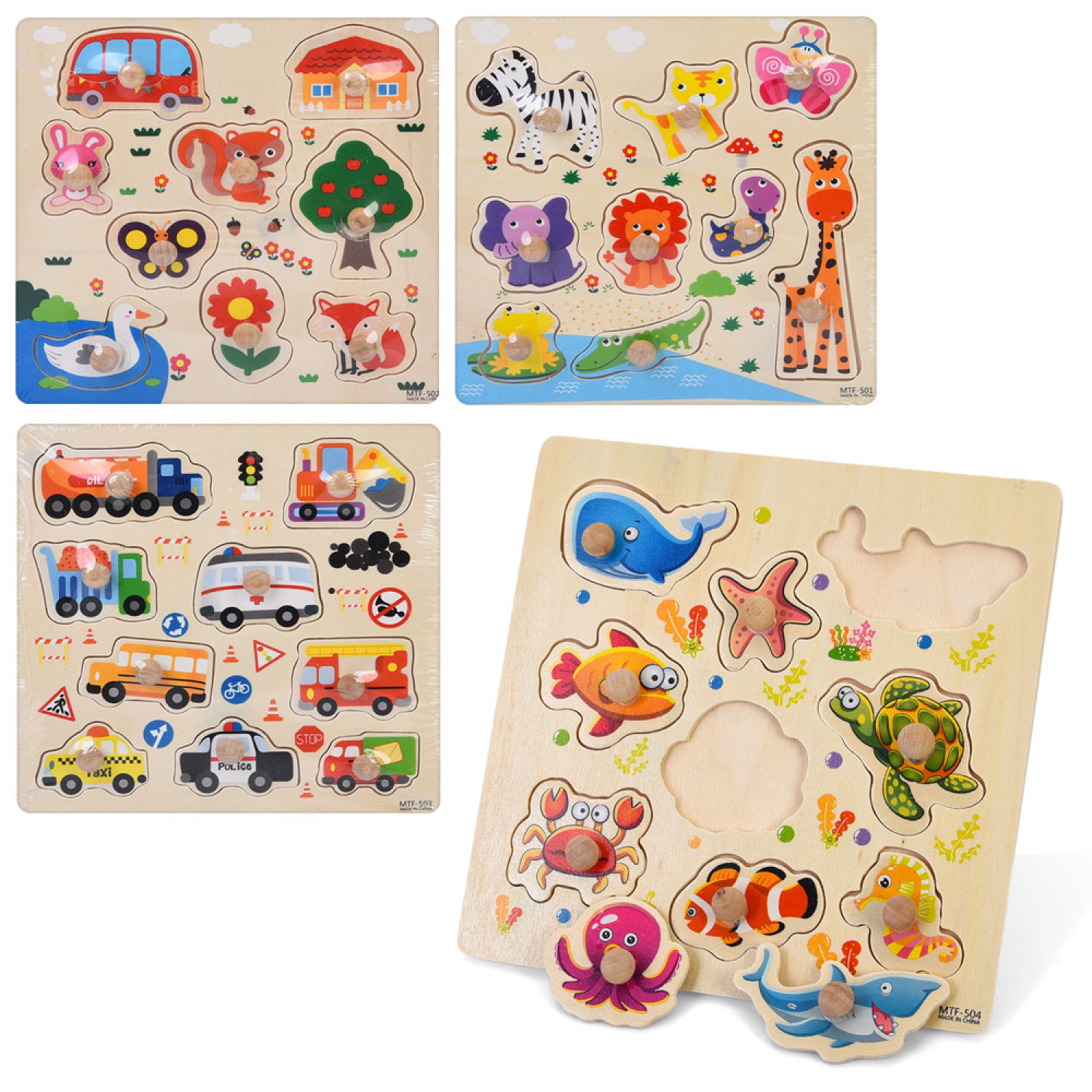 Дерев'яна іграшка Рамка-вкладиш з ручкою, 4 види, у п/е, 21-21-1,5см /50/
