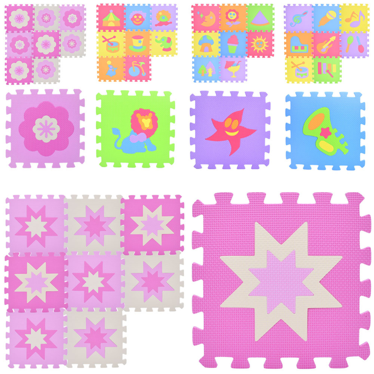 Килимок Мозаїка EVA, 9дет, (9мм, 30-30см), 2 види(квіти, зірки), в пакеті, 30-30-8см /12/