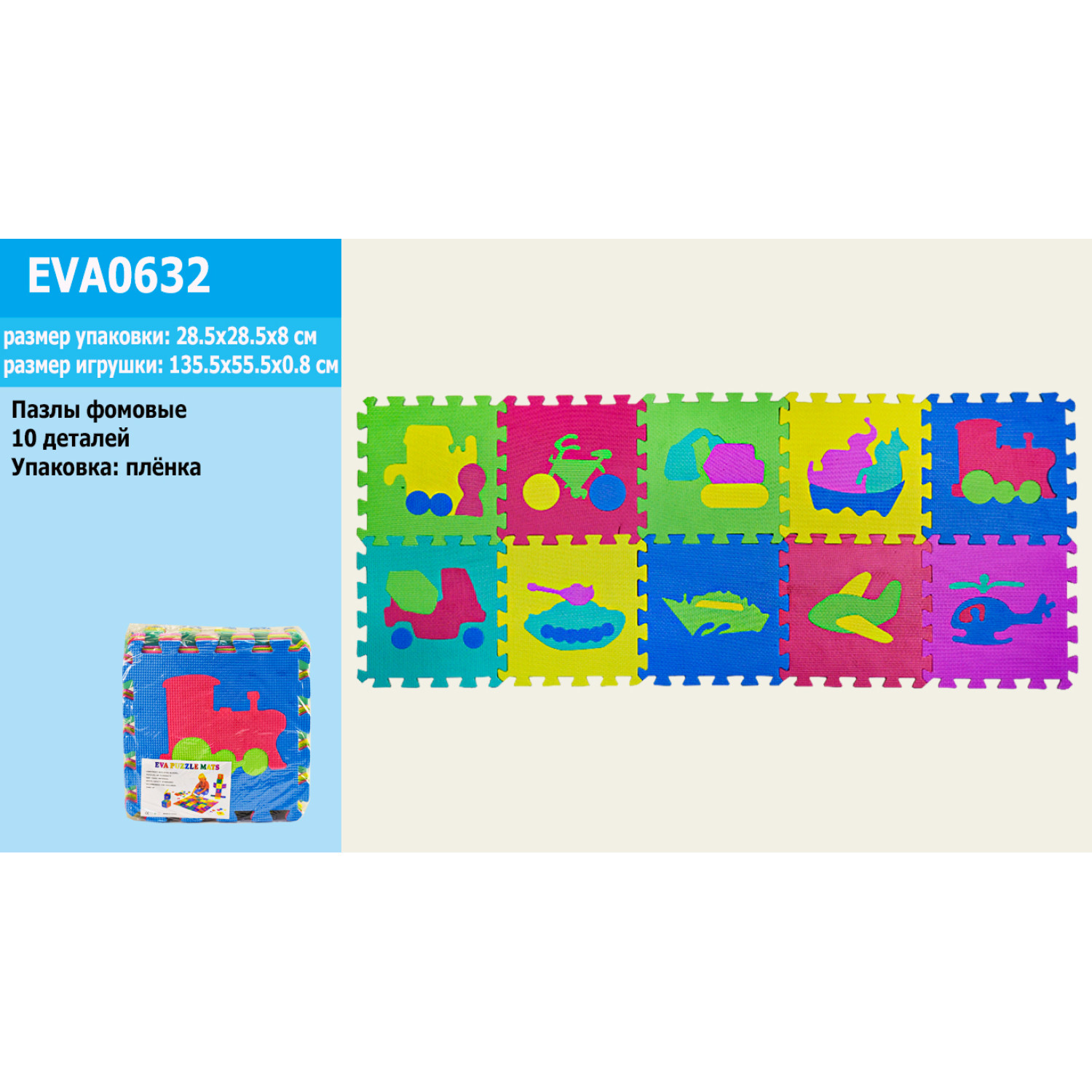 Пазлы фомовые Танспорт 10 деталей, размер одной детали 28,5*28,5*0.8см Материал ЕVA, из которого изготовлены детали коврика-пазла довольно лёгкий и малыш беспроблемно сможет их поднимать