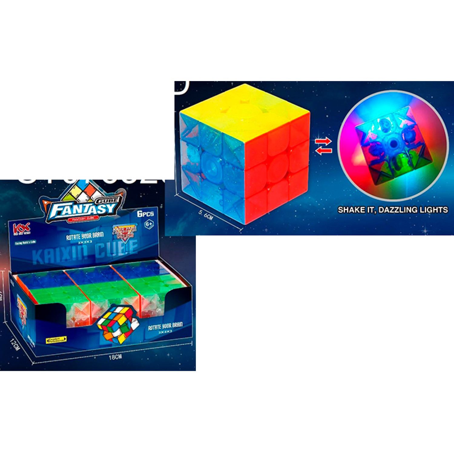 Гра кубик, 5,5см, 3х3, світло, бат(табл), у п/е /24/144/6шт в кор. 18-6-12см