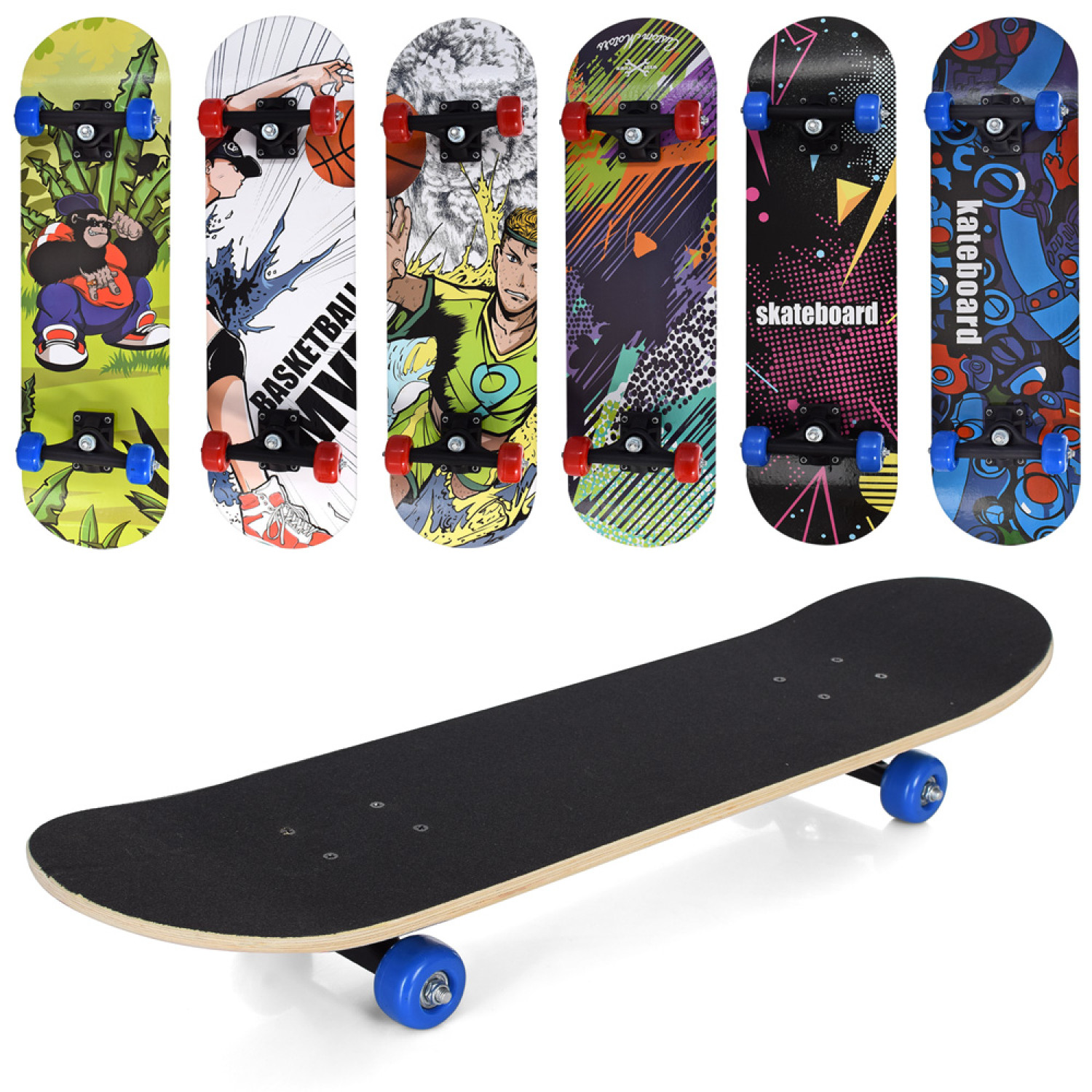 Скейт (наждак) 70-20,пласт.підвіска, кол.ПВХ, 7 шарів, 6 видів, 608Z, розібр., в кул. /6/