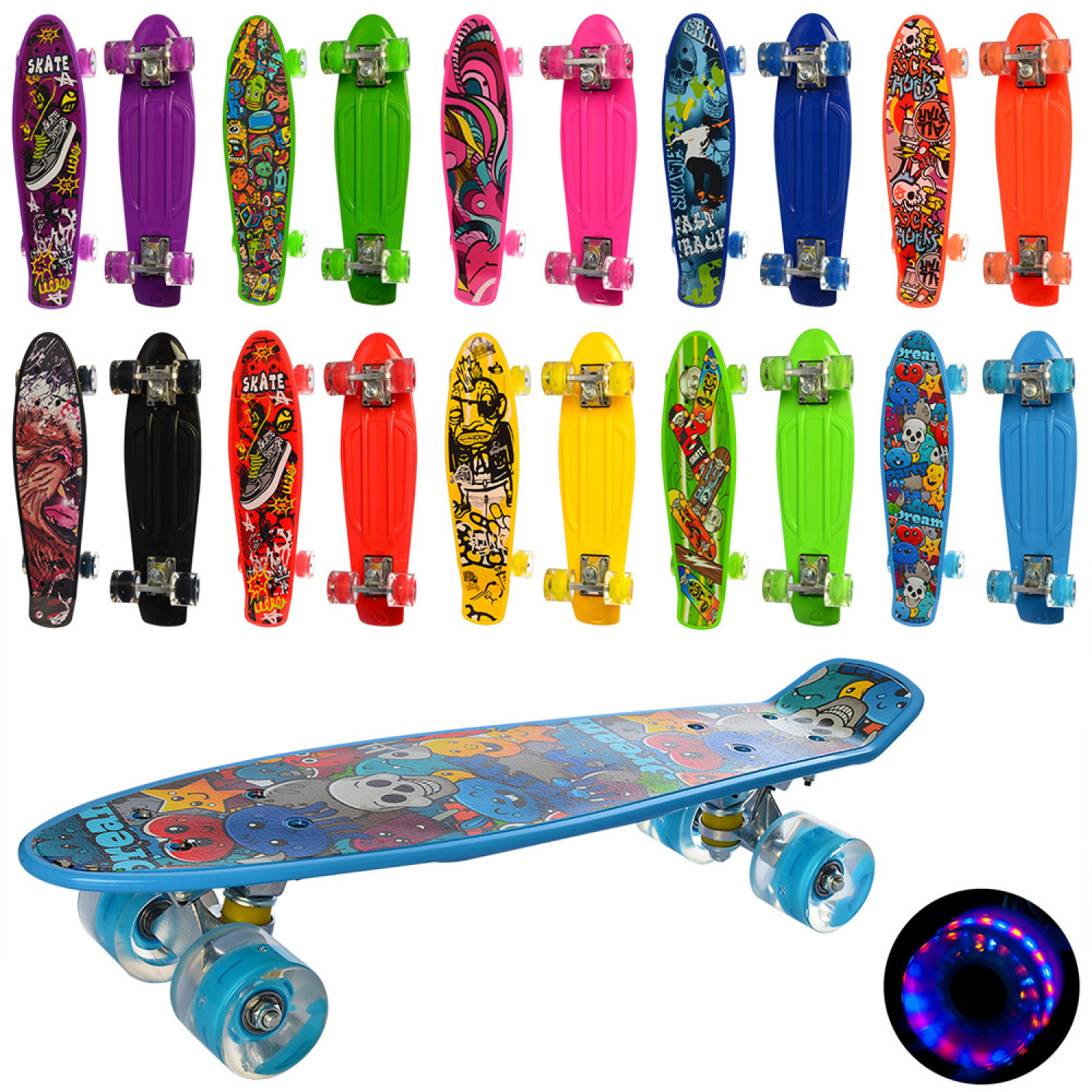 Скейт пенні,56-14см, колеса ПУ світло, малюнок, 10 видів, розібр.,в кул. /10/