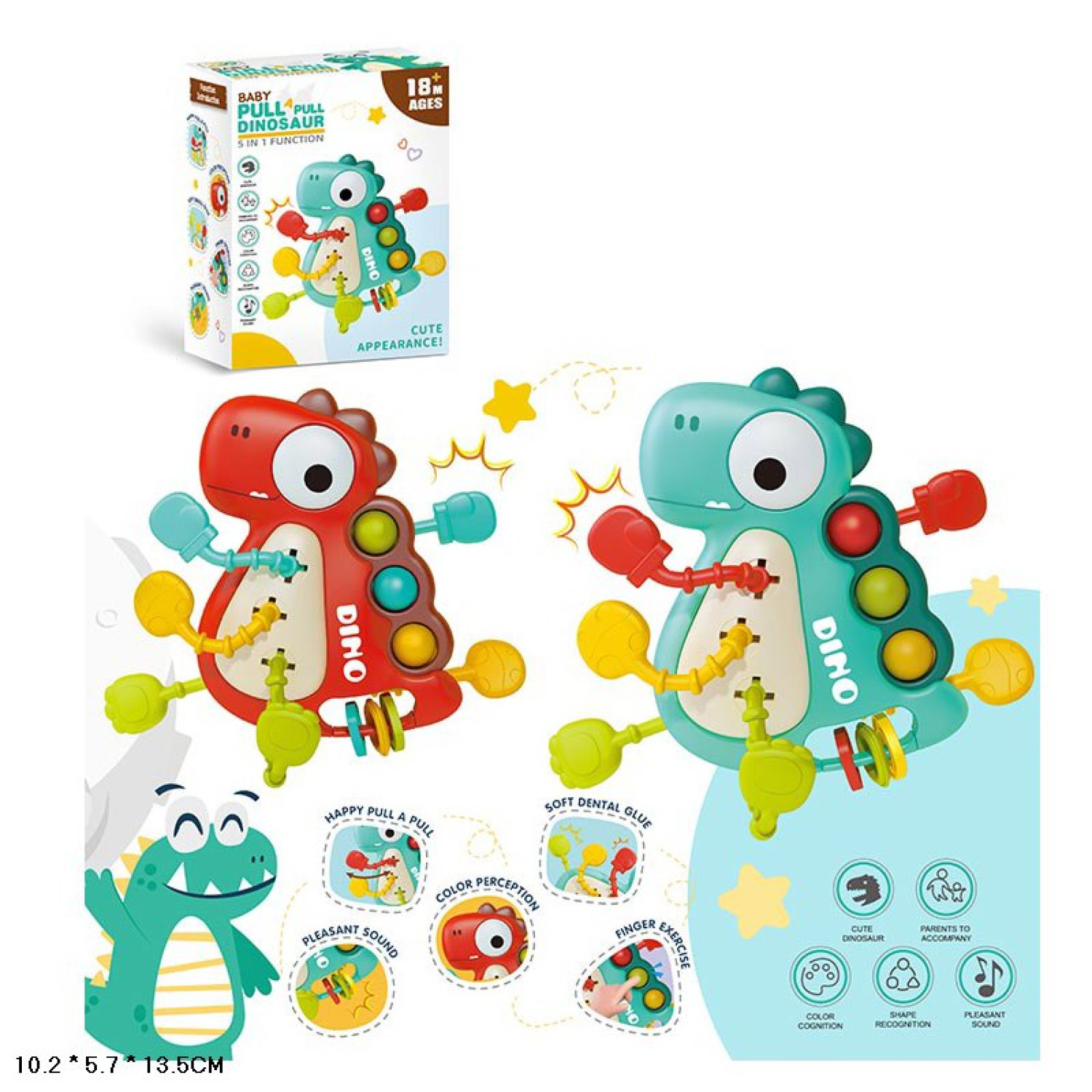 Брязкальце 2 кольори, “Динозавр”, поп-іт, гумові прорізувачі та елементи для перетягування, в кор. /240-2/
