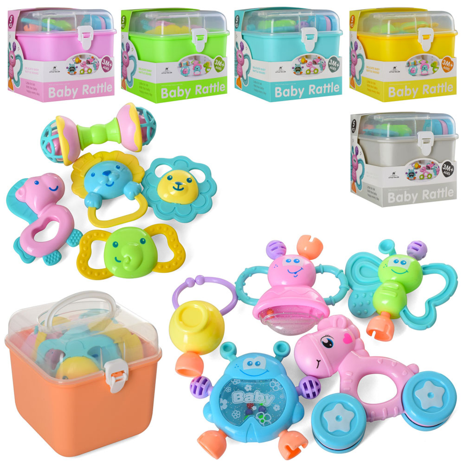Брязкальце 5шт, від 10см, пласт.ящик, 2 види (по 3 кольори), в кор-ці, 12-12-11, 5см /36/