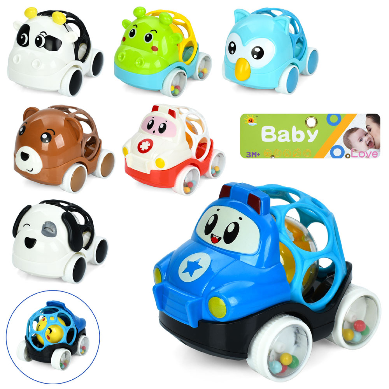 Брязкальце машинка-тварина 10см, кулька, 8 видів, в п/е, 17,5-17,5-8см /96/