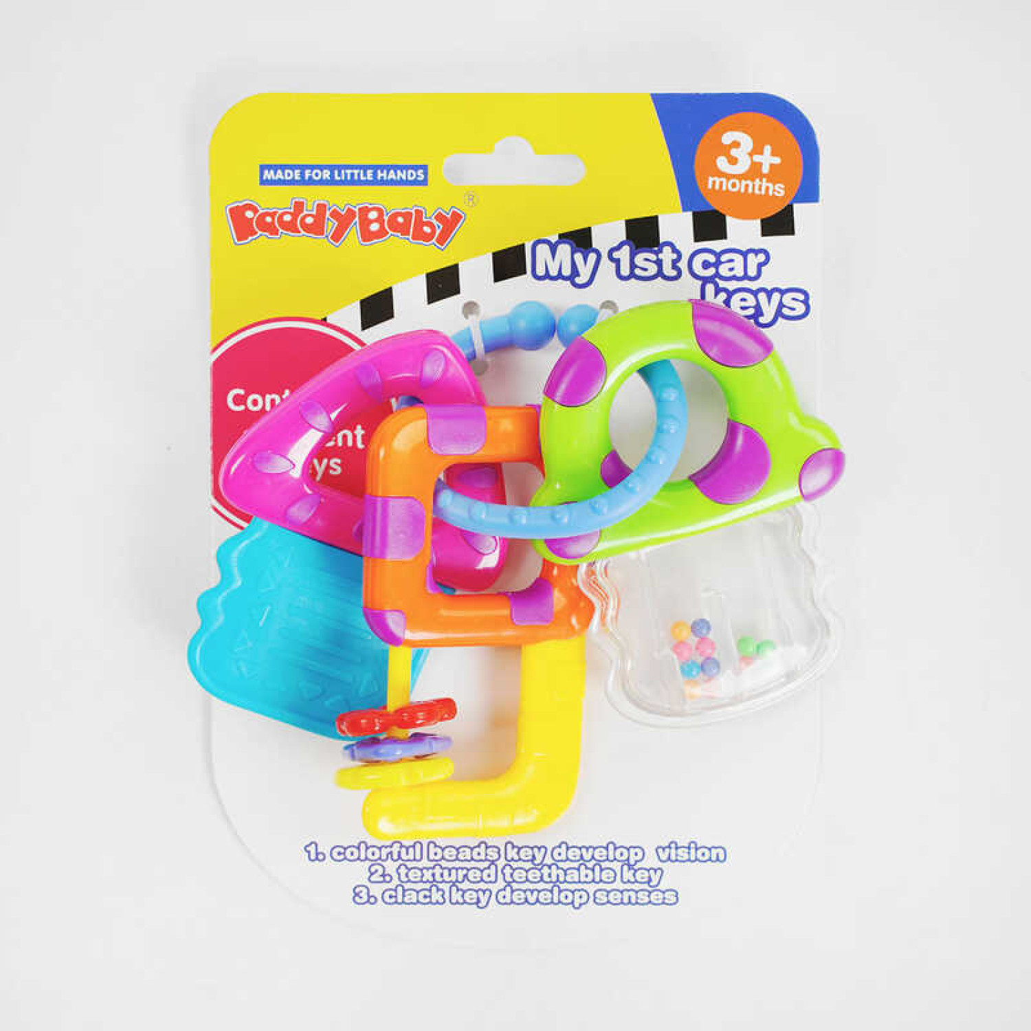 Брязкальце виготовлене з якісного полімерного матеріалу, який не завдає шкоди здоровю дитини. Брязкальце виготовлене в яскравих кольорах. Розвиває тактильні, зорові та рухові здібності. Легка конструкція та форма розрахована для маленьких ручок дитини.