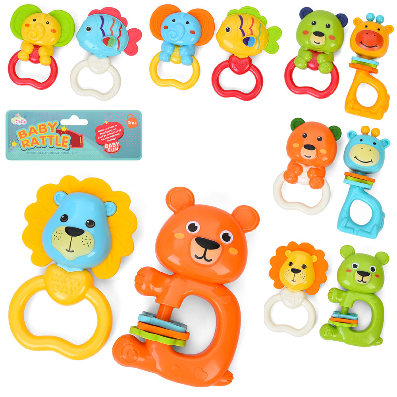 Брязкальце набір 2шт, тварини, 11см, прорізувач, 3 види по 2 кольори, у п/е,15,5-20-3см /180/
