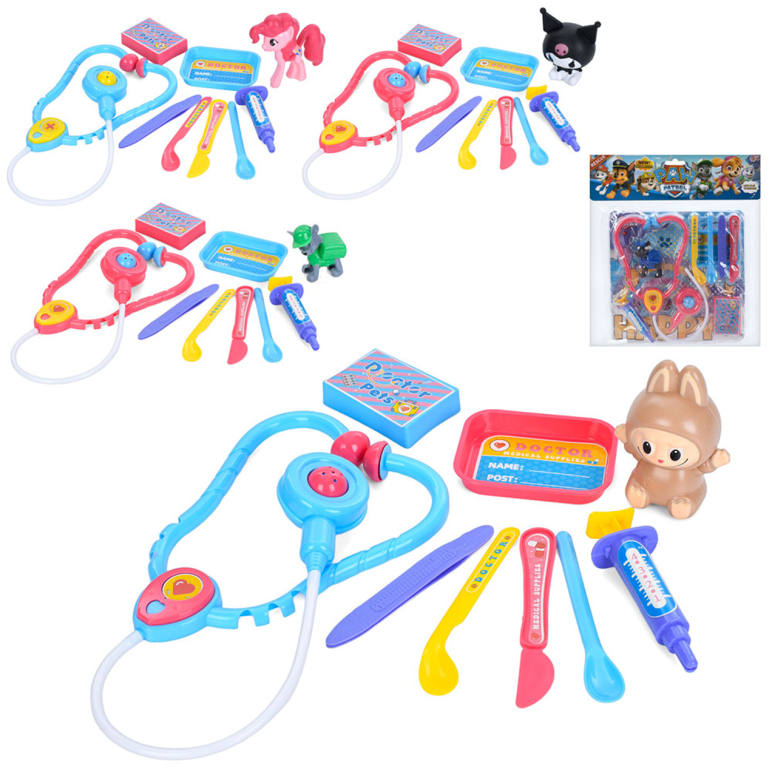 Набір лікаря стетоскоп, фігурка, медичні інструменти, 4види(LBB, KR, ЩП, LP), на листі, 29-33-4см /72/