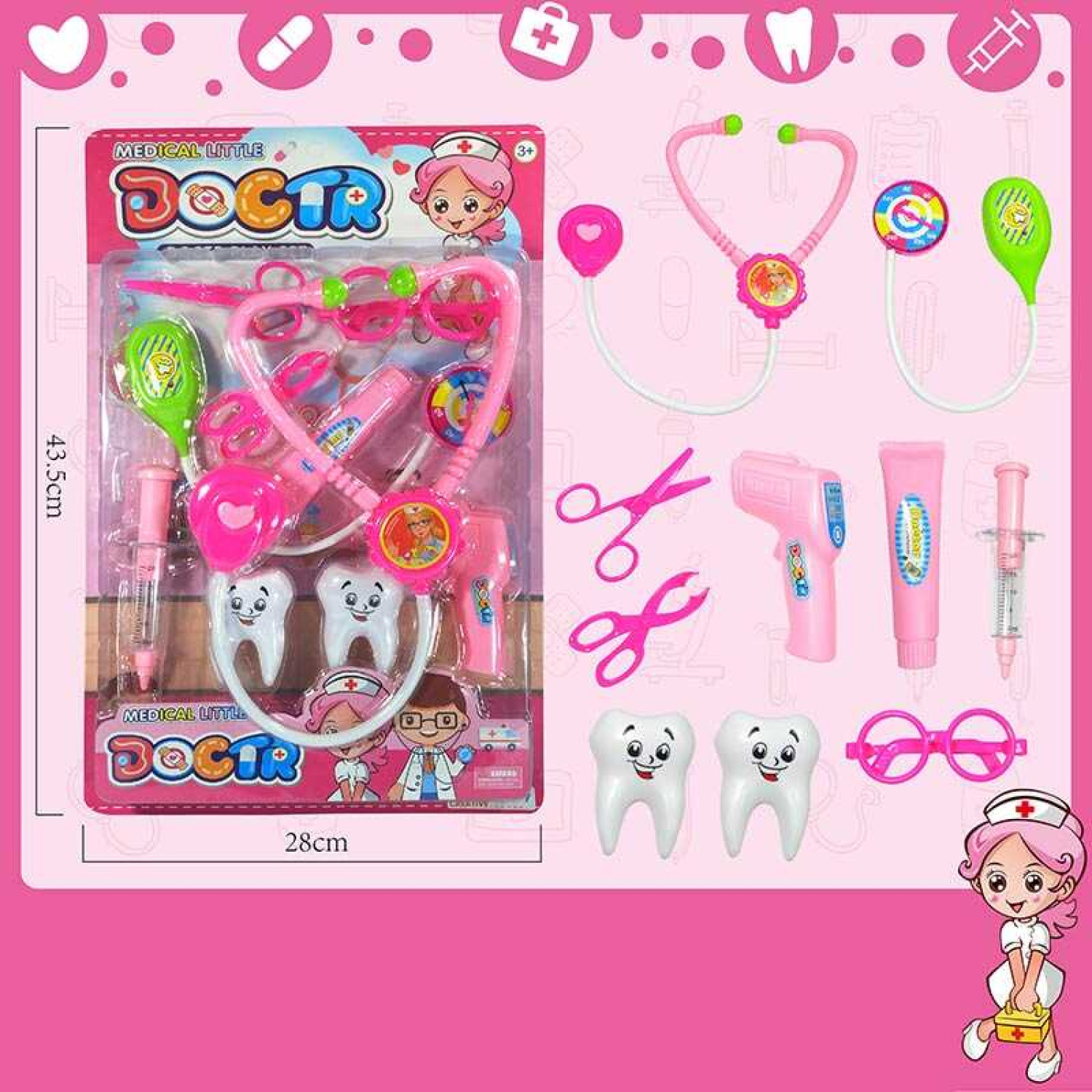 Набір лікаря стетоскоп, термометр, тонометр, шприц, ножиці, 2 зуби, тюбик пасти, окуляри, на листі /72-2/