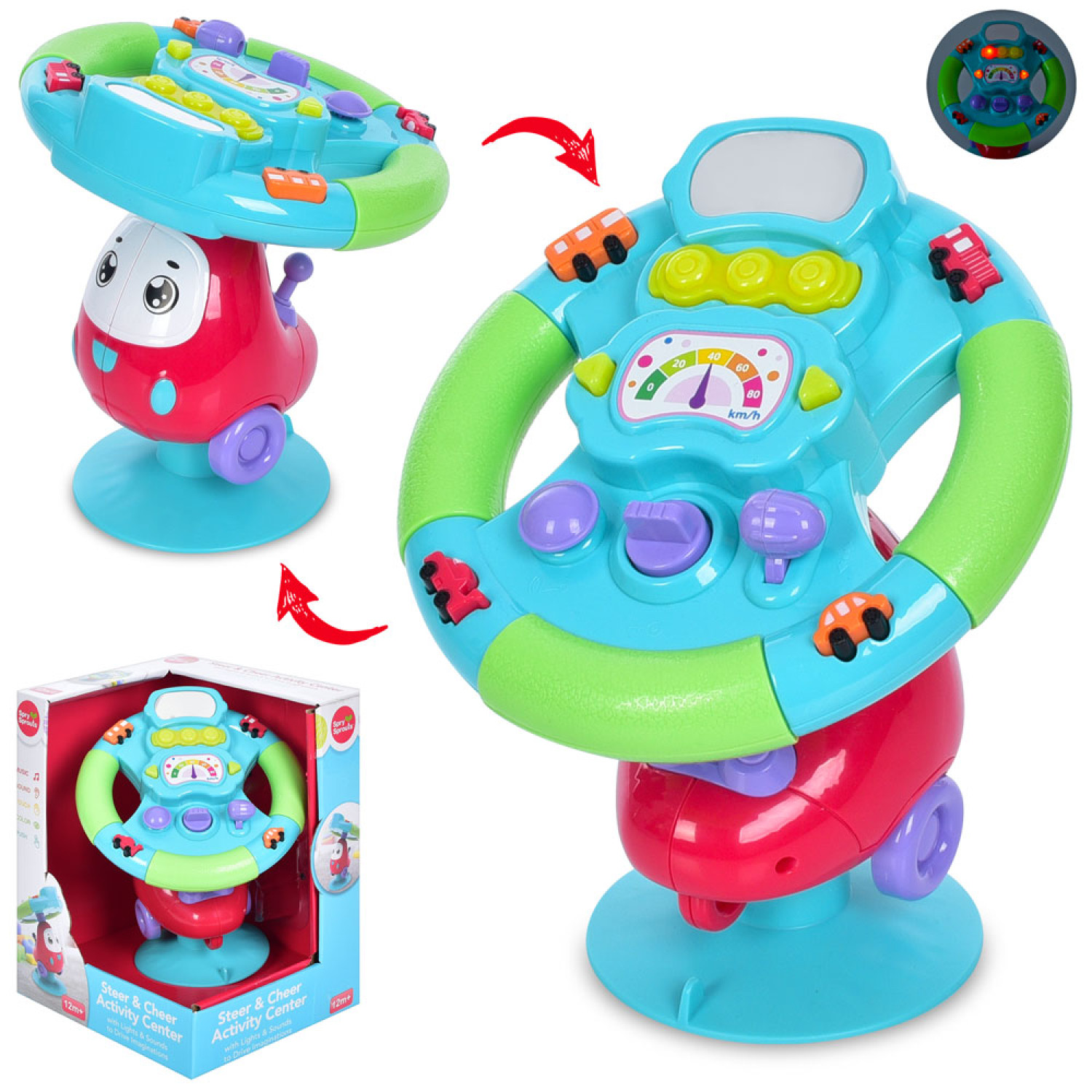 Автотренажер звук, світло, тріскачка, на присосці, на бат-ці, в кор-ці, 24,5-19-17см /12/