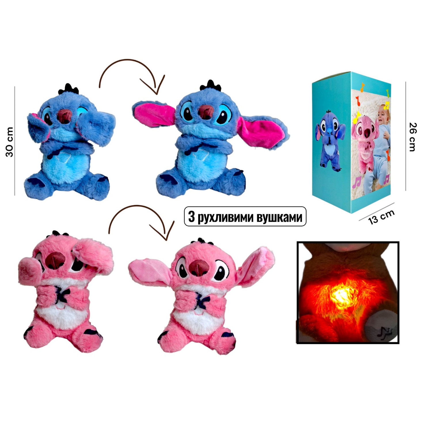 М'яка іграшка нічник дихаючий Стіч з рухливими вухами, 2 кольори, 25 см, в кор. //