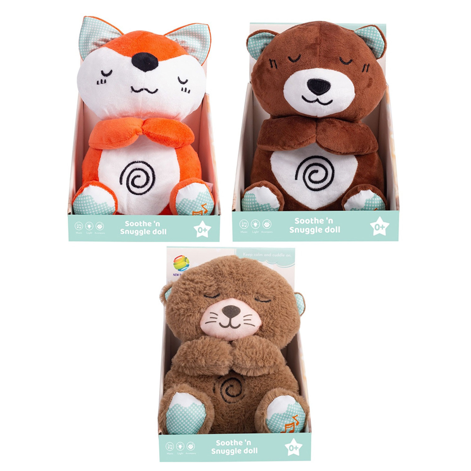 Нічник тварина, 24-15-10см, плюш, світло, музика, рухливий живіт, 3 види(лисичка, ведмедик, видра), на бат-ці, в кор-ці/пакет, 17,5-23,5-146,5см /24/