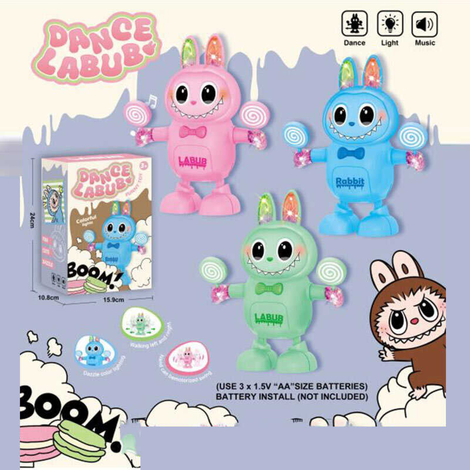 Особливості: Герой із яскравим дизайном. Музика та танцювальні рухи. Підсвічування з різними кольорами. Два режими: тільки підсвітка без звуку та підсвітка зі звуком і танцем. Іграшка працює від 3 батарейок типу АА (у комплект не входять). Розмір: 15х10х23.5 см.
