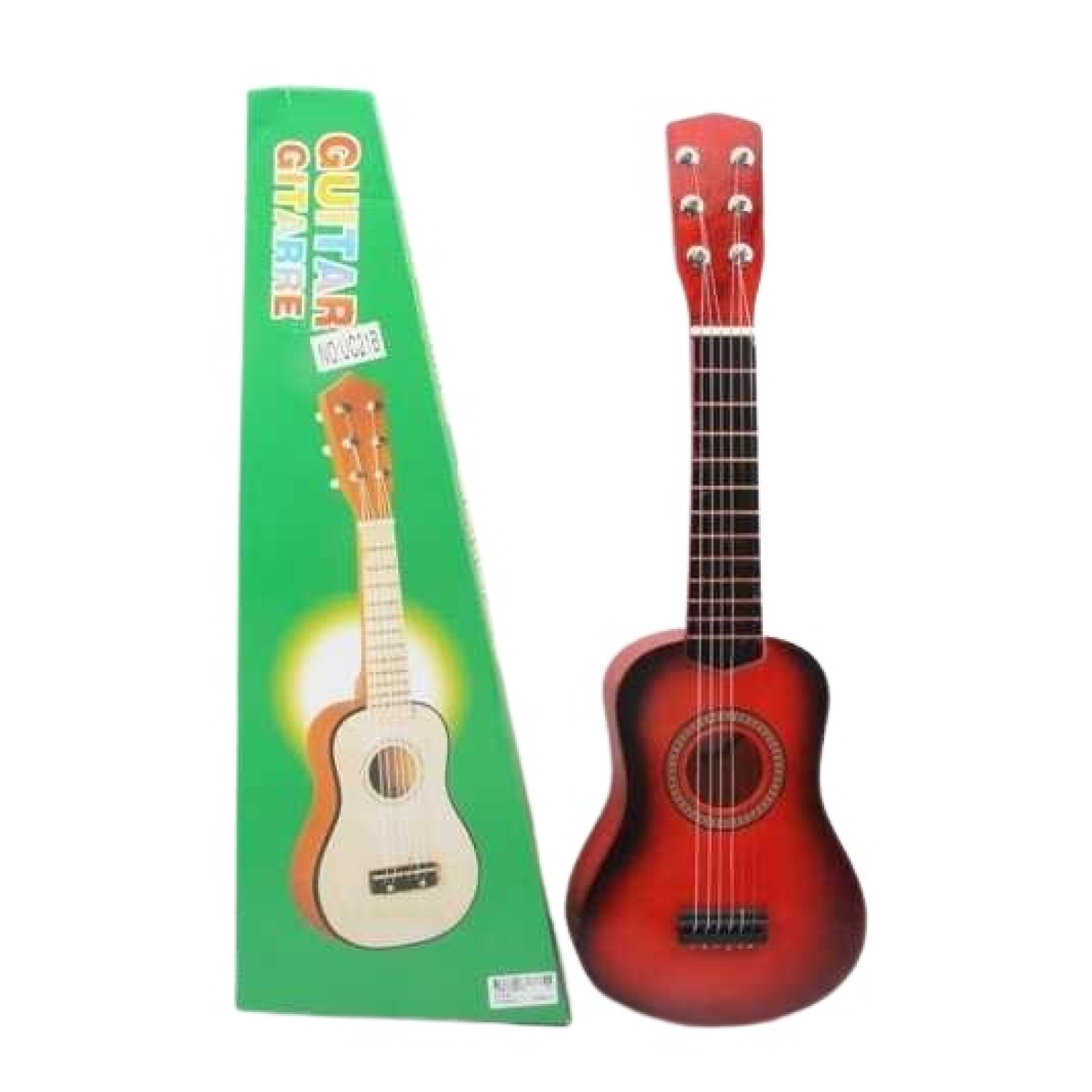 Особливості: Розмір гітари: 18х5,5х53 см. 6 струн. В комплекті 1 змінна струна. Дека гітари виконана з деревини. Медіатор. Розвиває дрібну моторику та музикальний слух. Гітара виконана з якісних та безпечних матеріалів.