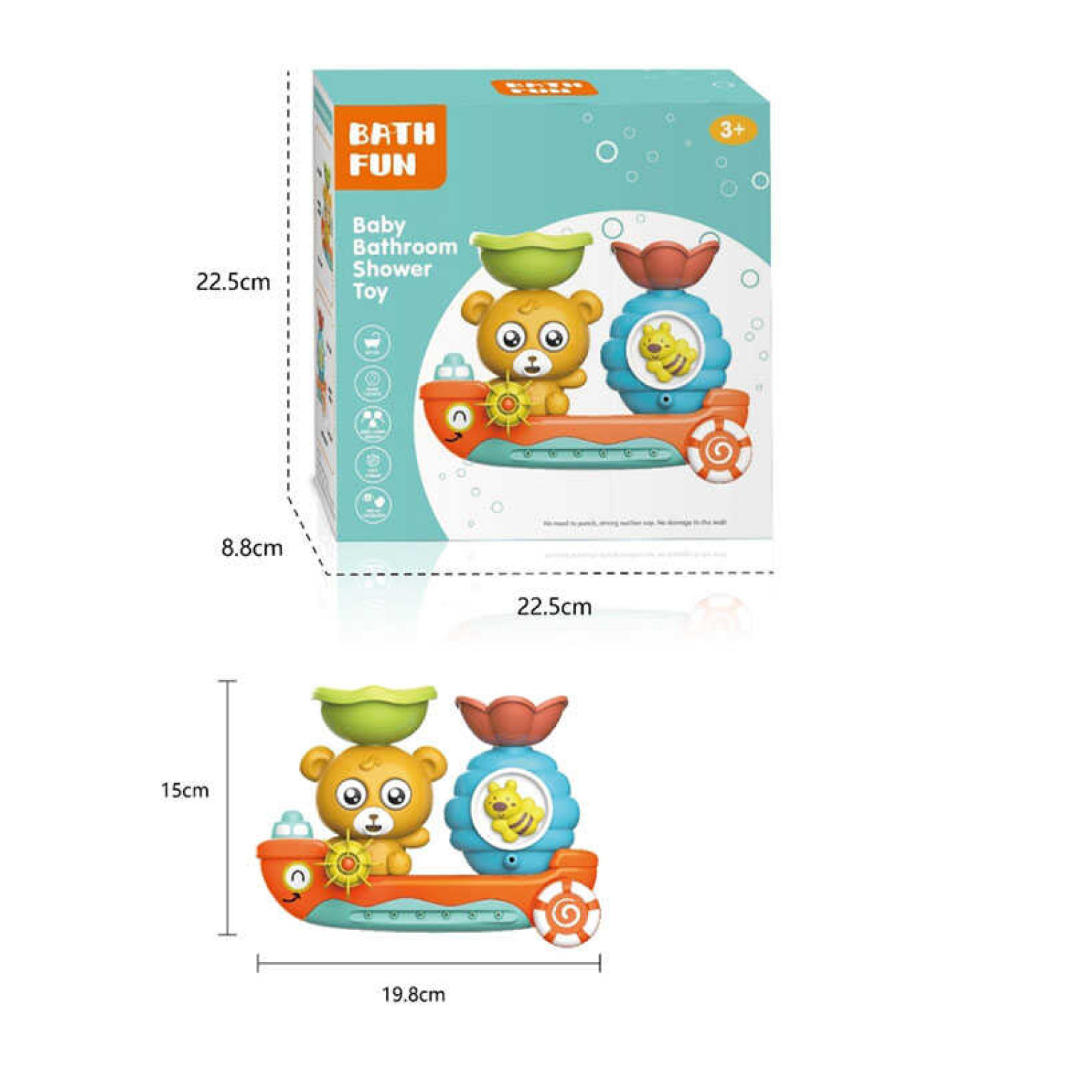 Особливості: Розмір іграшки: 20х8х15 см. Механічний принцип роботи. Кріпиться на присосках. До набору додано кухлик. В іграшці є невеличкий водяний млин, який обертається після наливання у неї води. Рухомі елементи. Виконано з якісного та безпечного пластика.