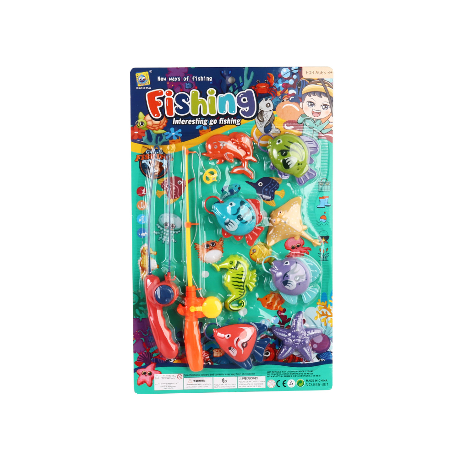 Ігровий набір "Риболовля" на картонному планшеті. Комплектація: 2 вудки різного типу: з магнітом та з гачком, 4 рибки з магнітами, 4 рибки з кільцями.