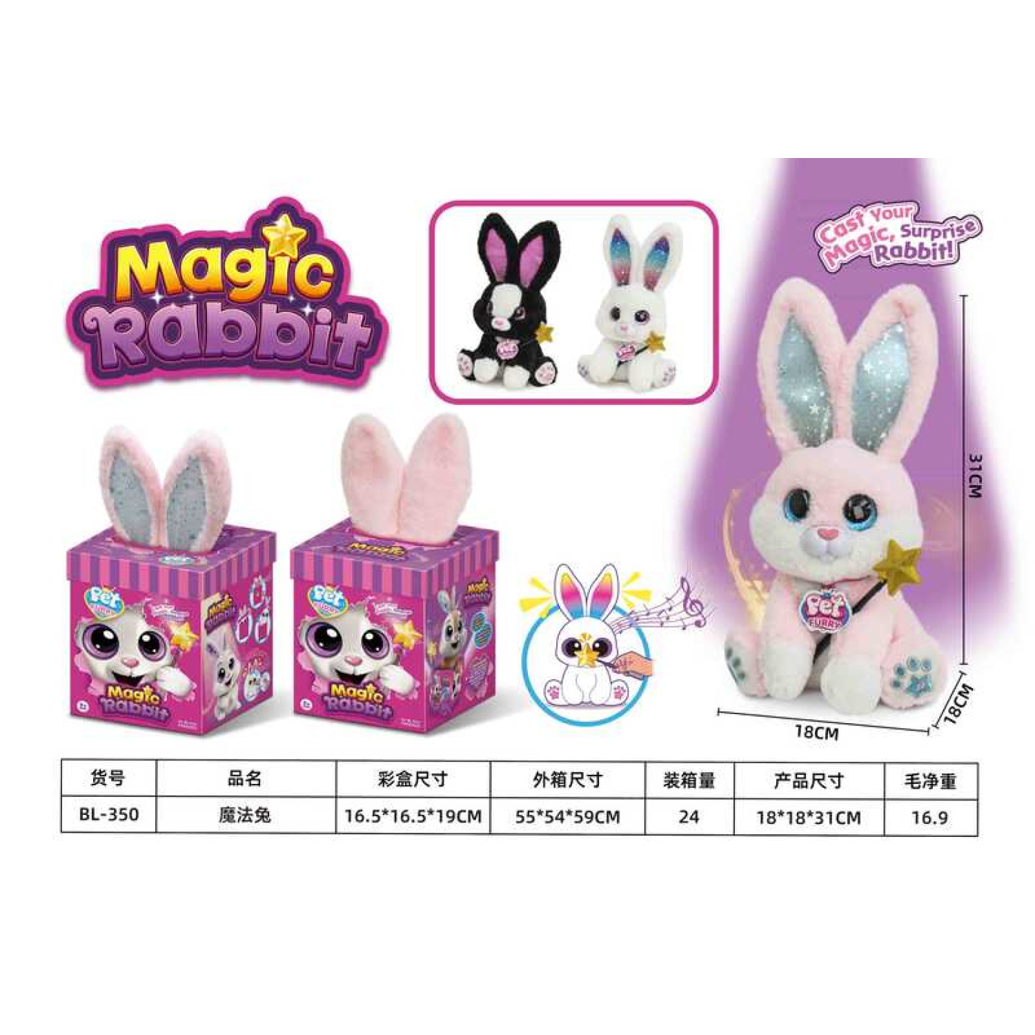 Особливості: Розмір інтерактивної тваринки 18х13х31 см. Вушка підсвічуються різними кольорами, варто лише доторкнутися чарівною паличкою до носика. Відтворює короткі мелодії та смішні звуки, вони змінюються з кожним новим дотиком палички. На лапці наявна кнопка, що відтворює пісні англійською. Великі пластикові оченята. Ефекти працюють від 3-х батарейок АА (не додаються). Виконано з приємного на дотик текстилю.