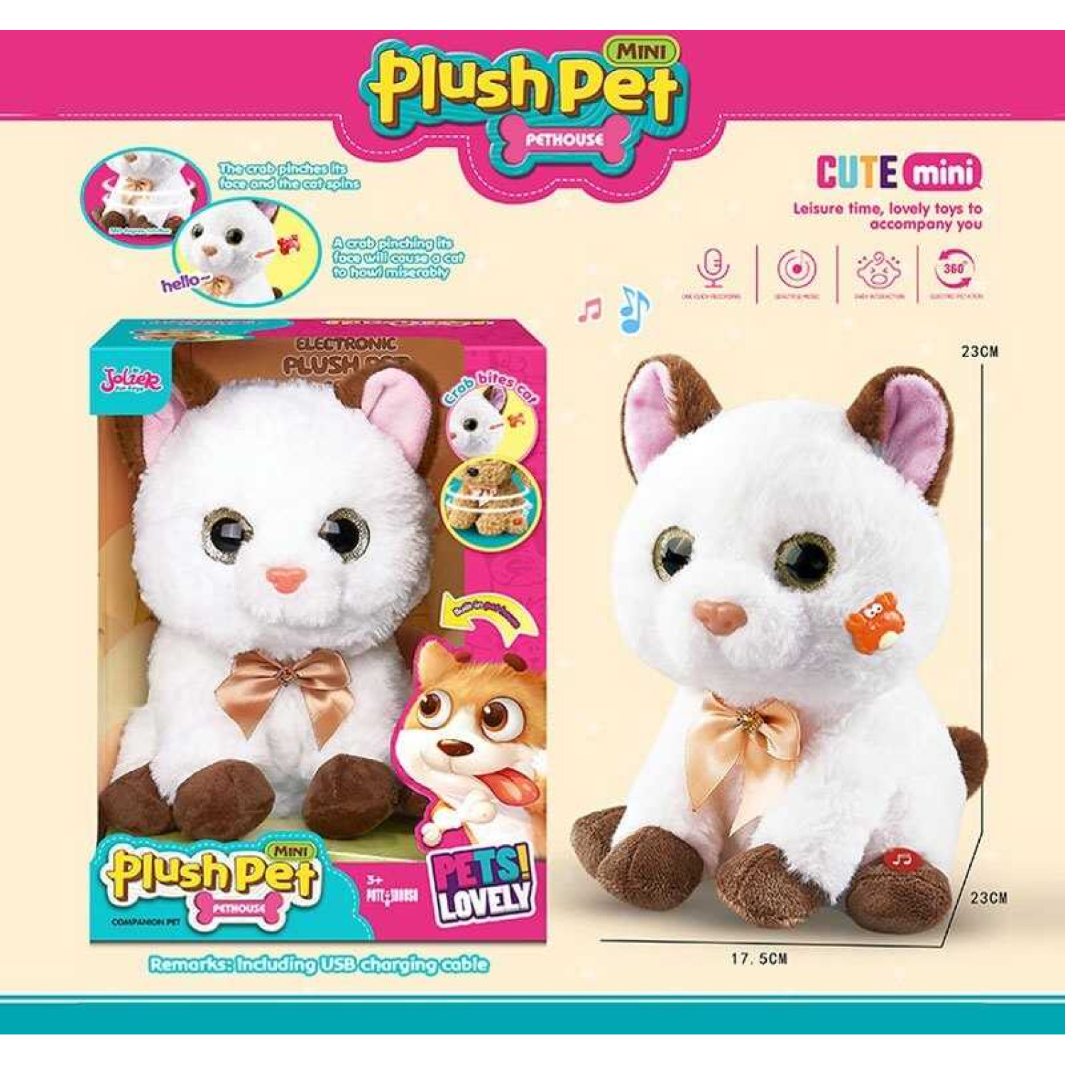 М'яка інтерактивна іграшка “Котик”, окастик, музика, рухається, повторюшка, магнітний крабик, USB-кабель, вбудований акумулятор 3.7V, в кор. /24/