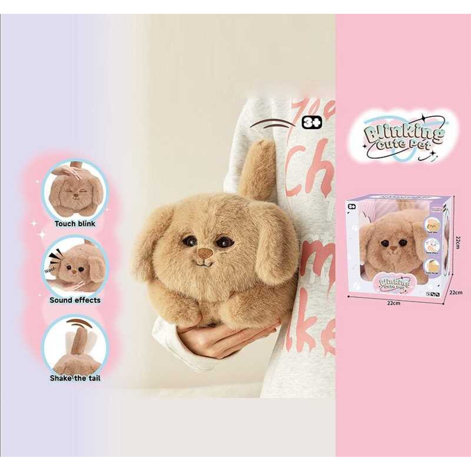 Собака 20см, сенсорний, музика(укр), пісня, звук, клипає очима, виляє хвостиком, плюш, м'яка іграшка, 2 кольори, на бат-ці, в кор-ці, 22-22-22см /12/