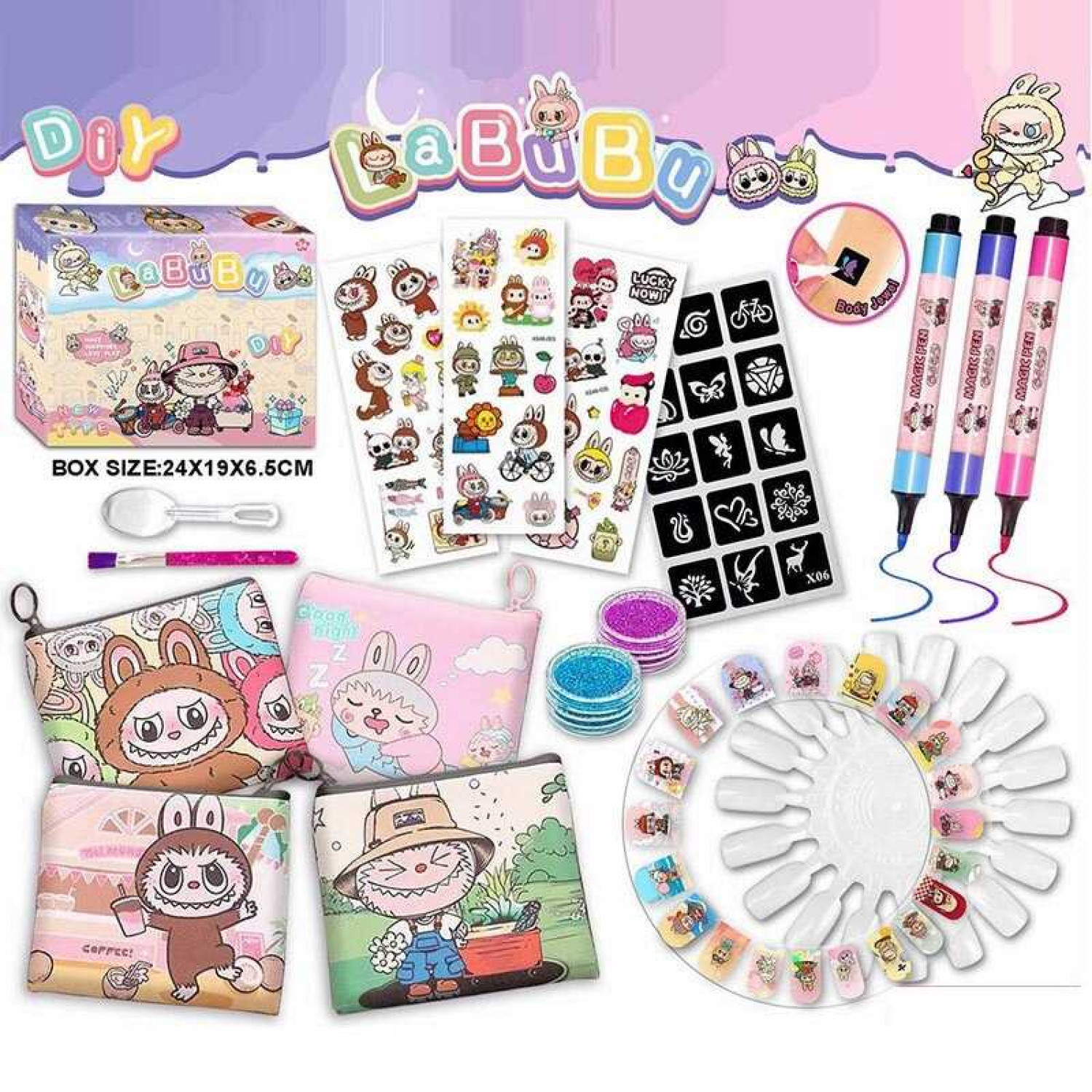 Набір прикрас "LABUBU" герой, блискітки, накладні нігті, наліпки, косметичка, пензлик, фломастери, в кор, МІКС ВИДІВ /120-2/
