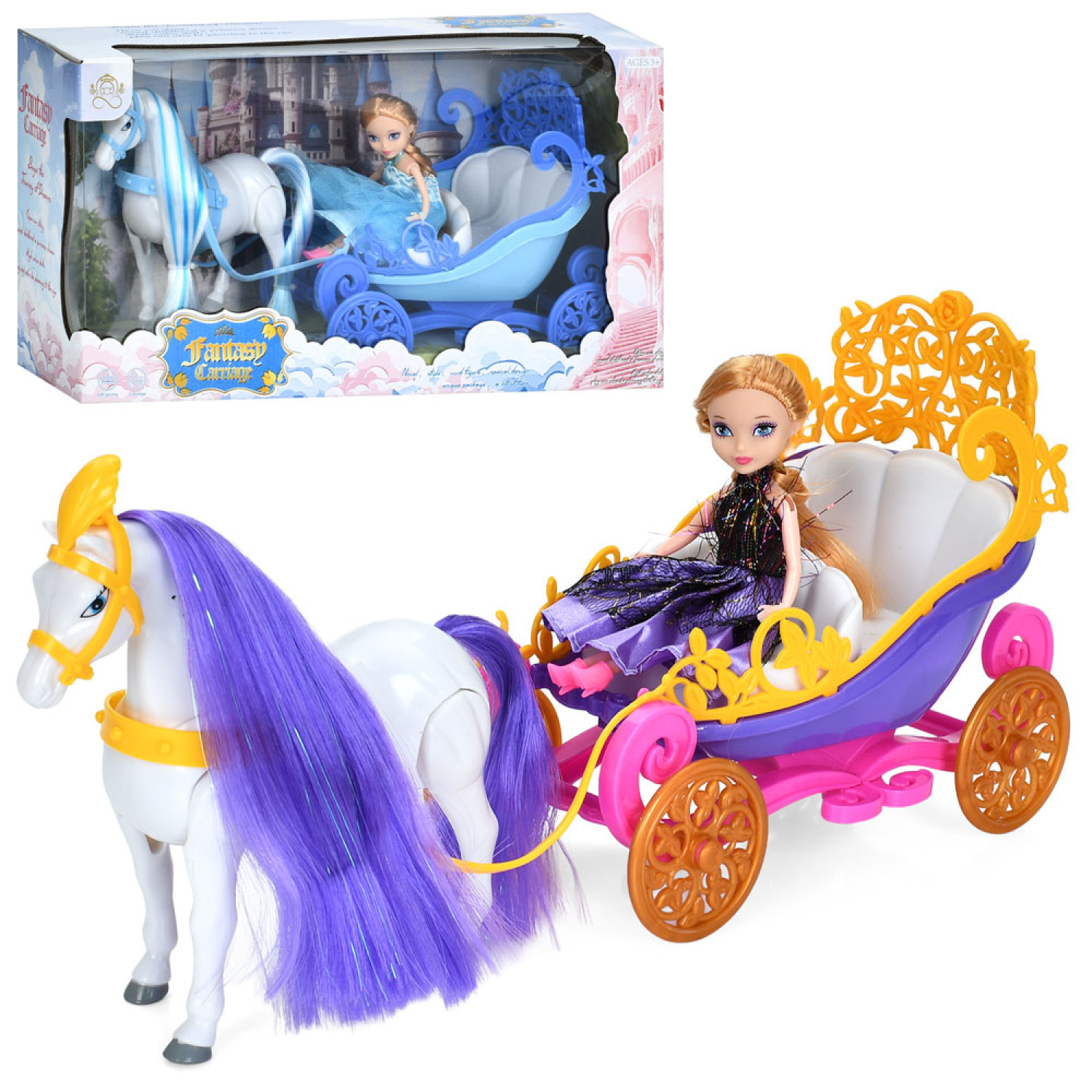 Карета 21см, з конячкою 16см, звук, ходить, лялька 16см, 2 види, на бат-ці, в кор-ці, 40,5-21-13см /24/
