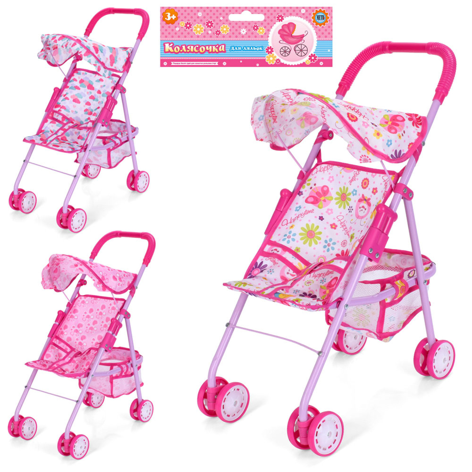 Коляска для ляльки, прогулянкова, 46-53-22см, кошик, дах, колеса 6,5см, в п/е, 27-57-12см /24/