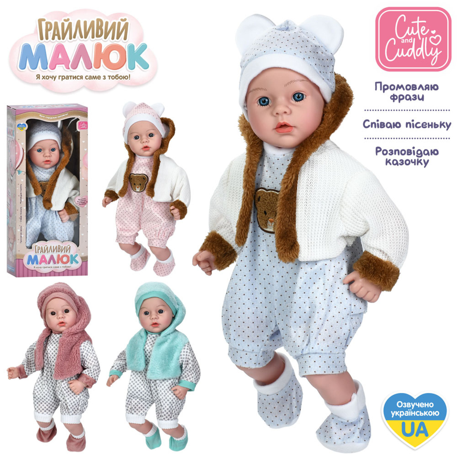 Лялька Грайливий малюк, пупс, 42см, м'яконабивний, музика-звук(укр), казка, пісня, 4 види, на бат(табл)і в, в кор-ці(розібрана), 19-45-12см /20/