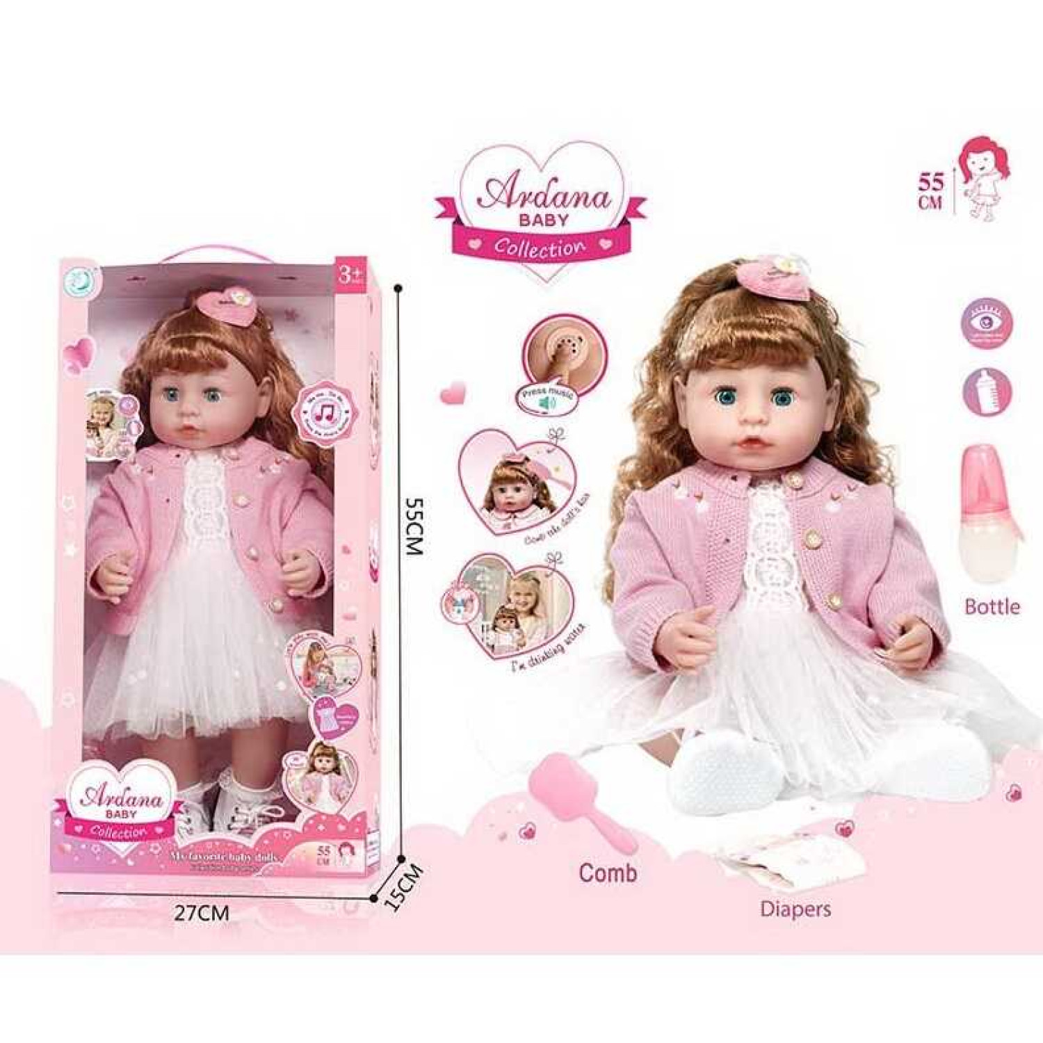 Лялька гумова, висота 52 см, заплющує очі, функціональна, прошите волосся, рухомі кінцівки, пляшечка, памперс, ходить на горщик, щітка для волосся, в кор. /12-2/
