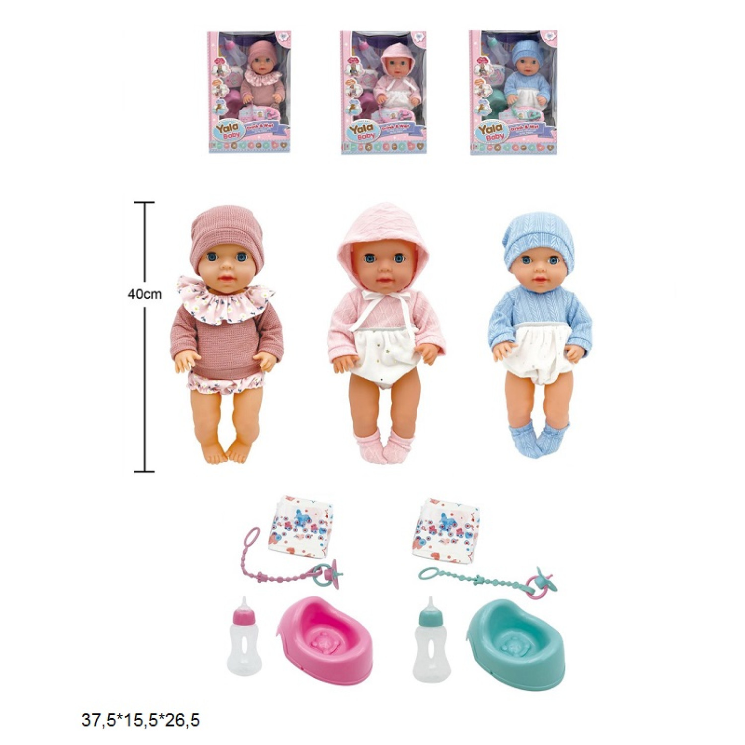 Пупс 40см YL2440E-E/YL2440E-F/YL2440E-N інтер-ний з аксес.горщик,кліпає,3в.кор.37,5*15,5*26,5 /16/