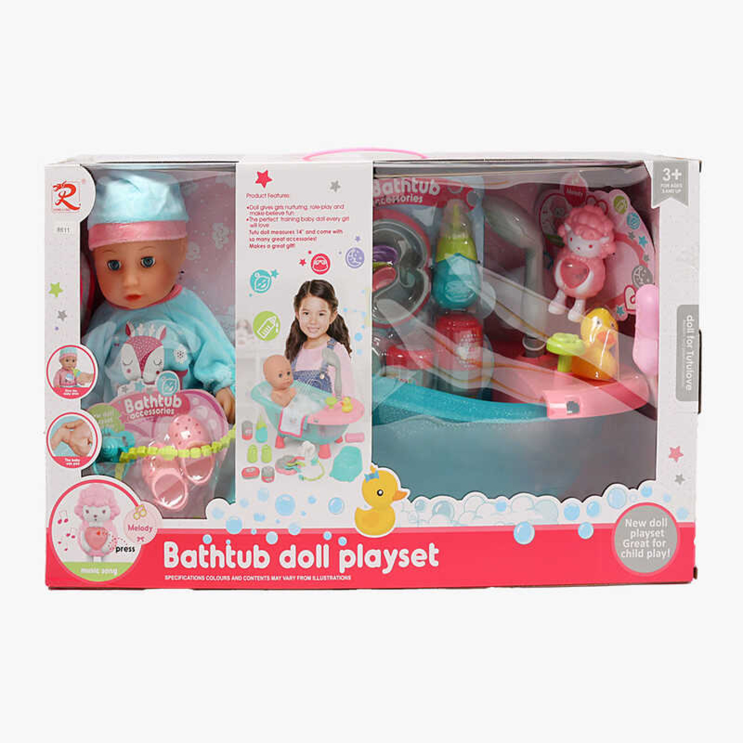 Пупс висота 30 см, гумова голова, п’є, ходить на горщик, світло, мелодія, ванна довжиною 40 см, помпова подача води, пляшечка, горщик, качечка, в кор. /6/