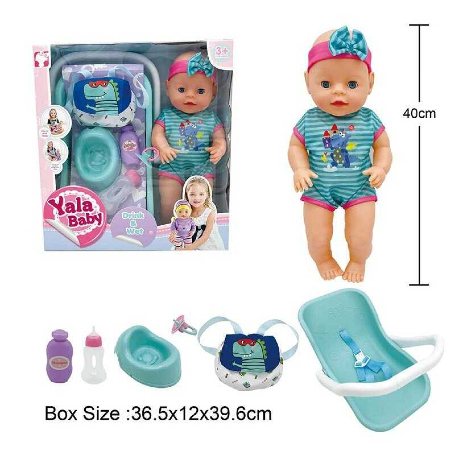 Пупс висота 40 см, п'є з пляшечки, ходить на горщик, заплющує очі, шезлонг, пляшечка, горщик, слинявчик, пустушка, в кор. /12/