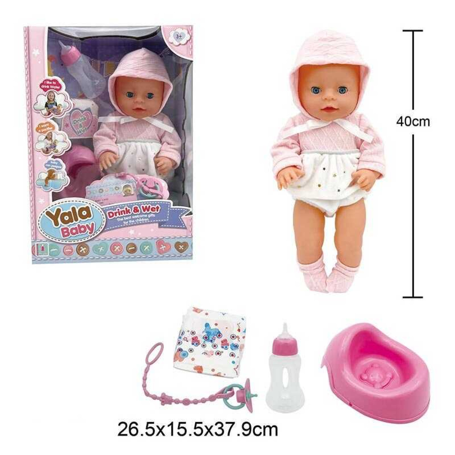 Особливості: Пупс з відмінною деталізацією. Має витончені риси обличчя. Заплющує очі. Пє з пляшечки. Ходить на горщик. Одягнений у знімний одяг. Має анатомічно правильні пропорції тіла. До комплекту входять додаткові аксесуари. Голова та кінцівки виконані з щільної гуми, а тіло - з пластику. Висота пупса - 40 см.