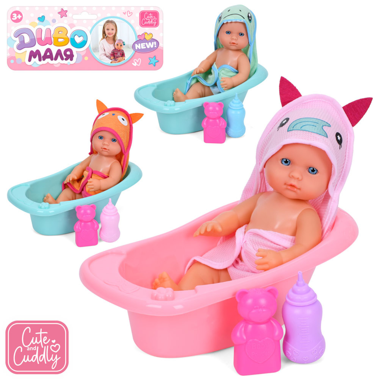 Пупс 32см, п'є-пісяє, ванна 33см, аксесуари, 3 види, у п/е, 24-47-20см /24/